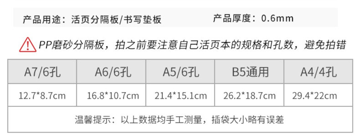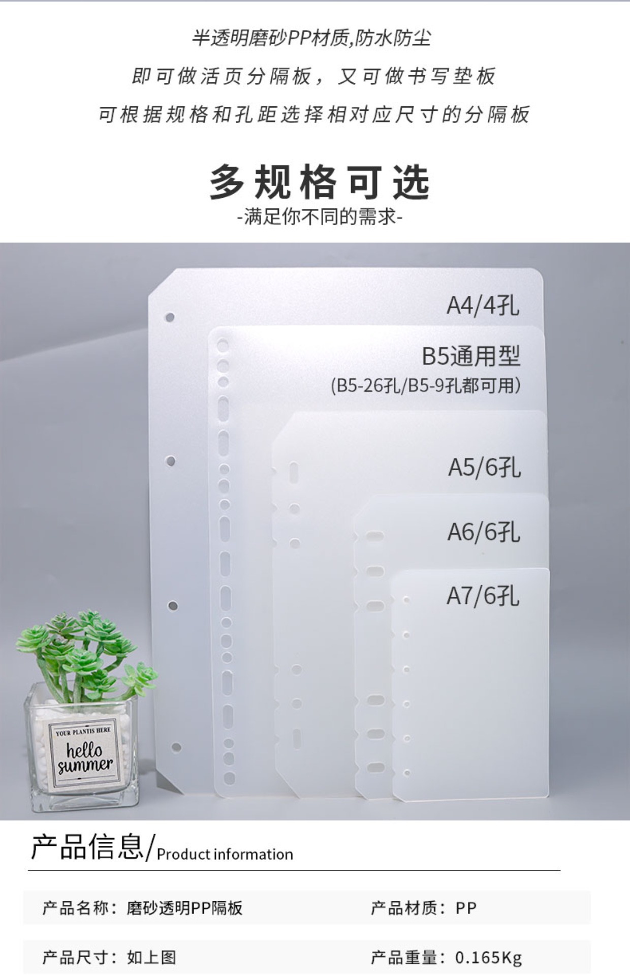 Блокнот с возможностью смены страниц PP A5A6A7, разделитель, обложка, матовая пластиковая внутренняя страница, разделитель B5M5A8, жесткая перегородка