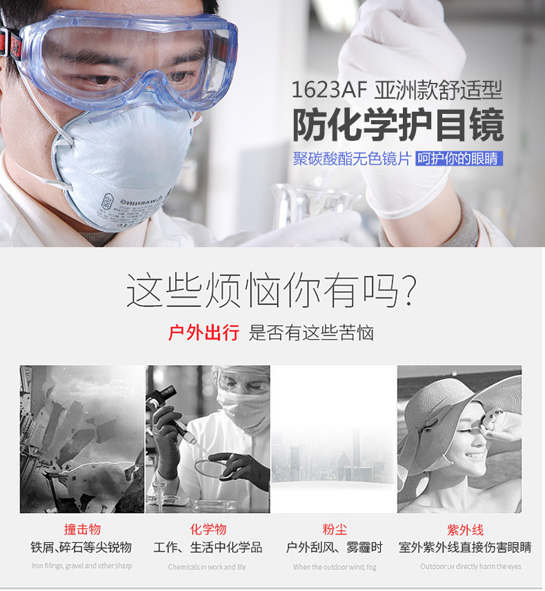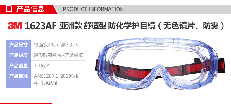 Очки 3M1623Af против тумана, защитная маска, ударопрочные, для химических лабораторий, защита от брызг