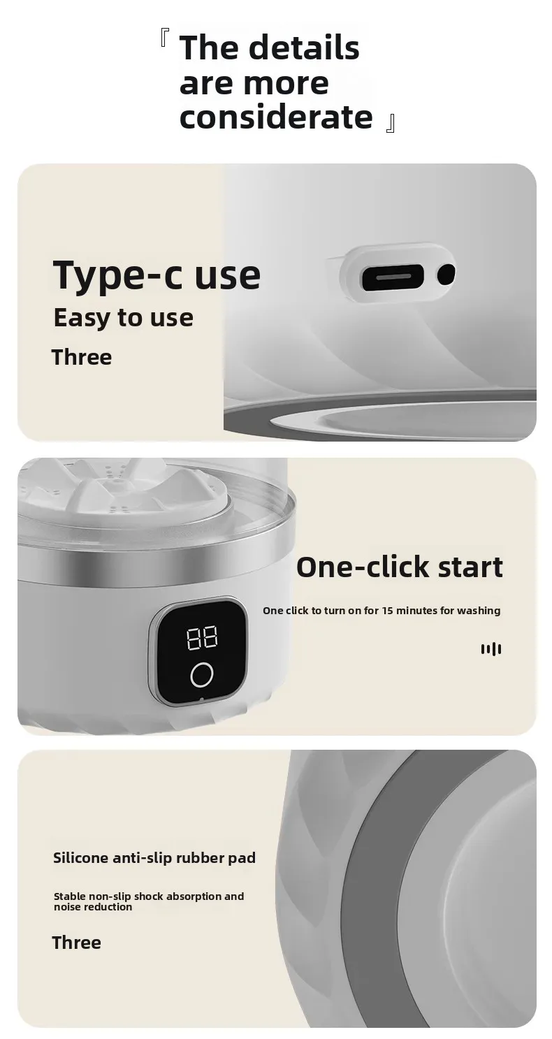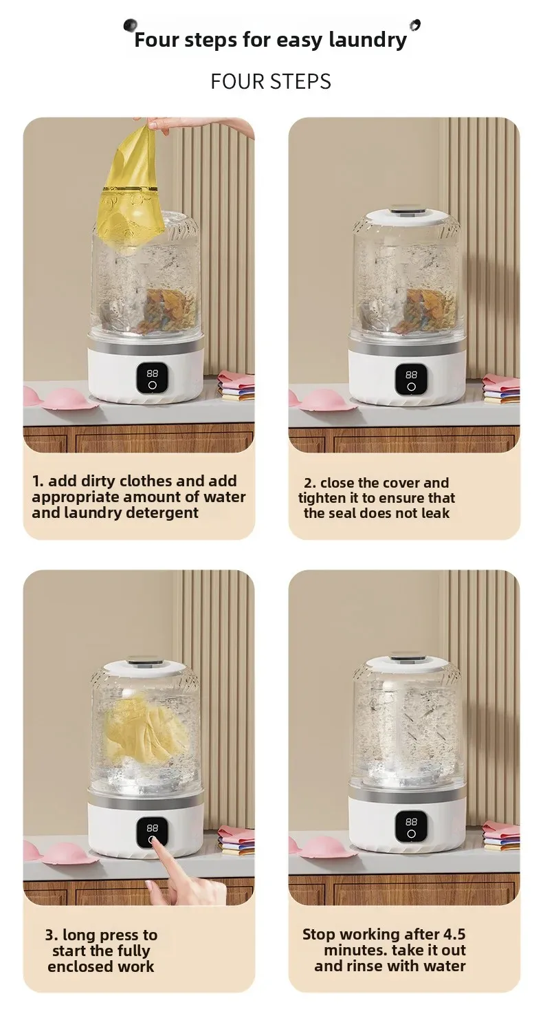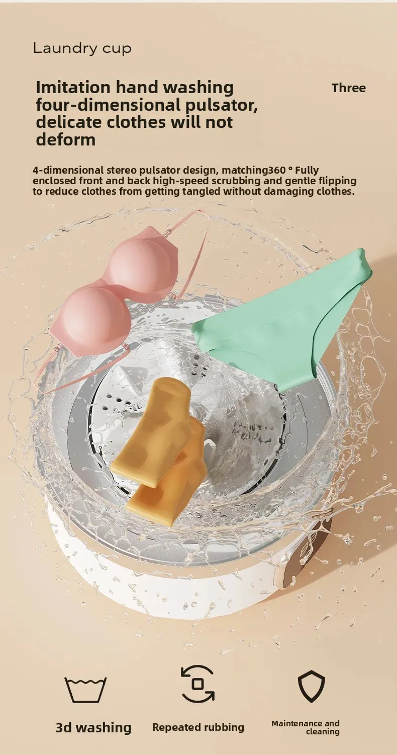 - Ultrasonic Technology : Equipped with advanced ultrasonic technology, this mini washing machine effectively cleans underwear and panties without damaging them.