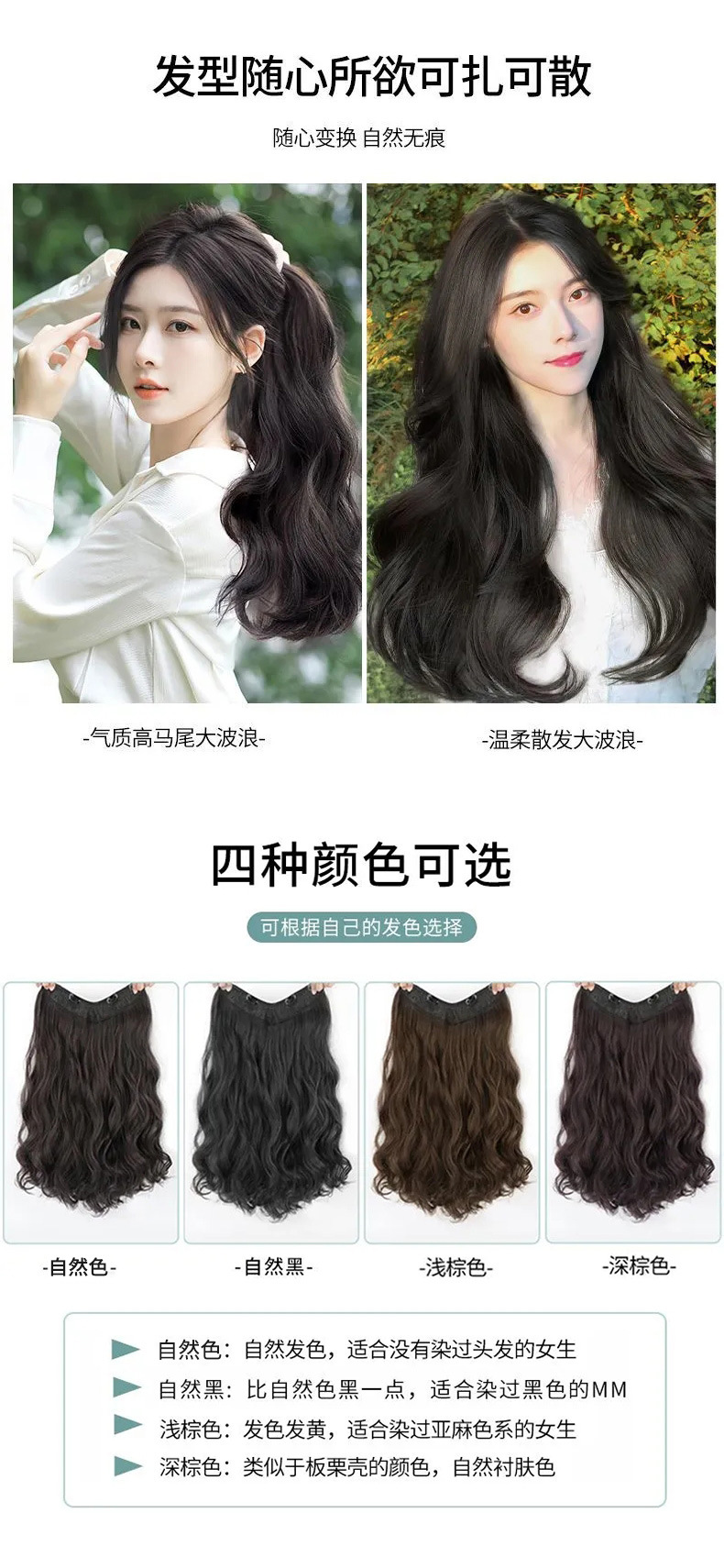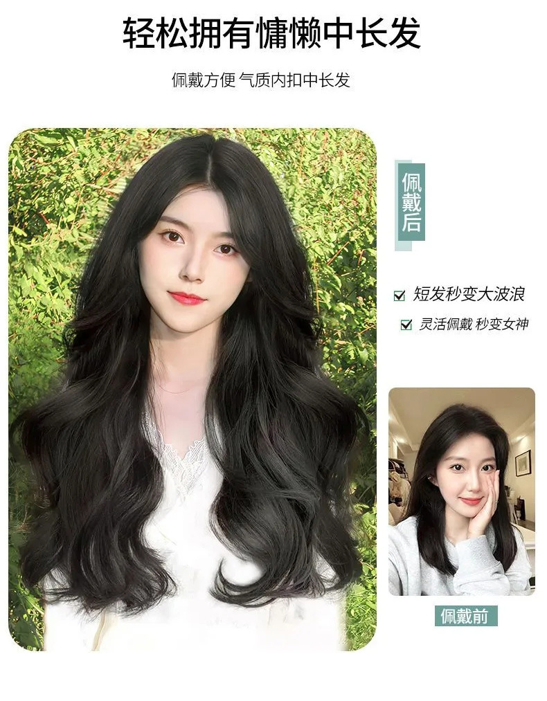 Парик для женщин с длинными волосами, одноразовые U-образные искусственные волосы, пушистые, невидимые, бесшовные летние патчи, большие волнистые кудрявые парики