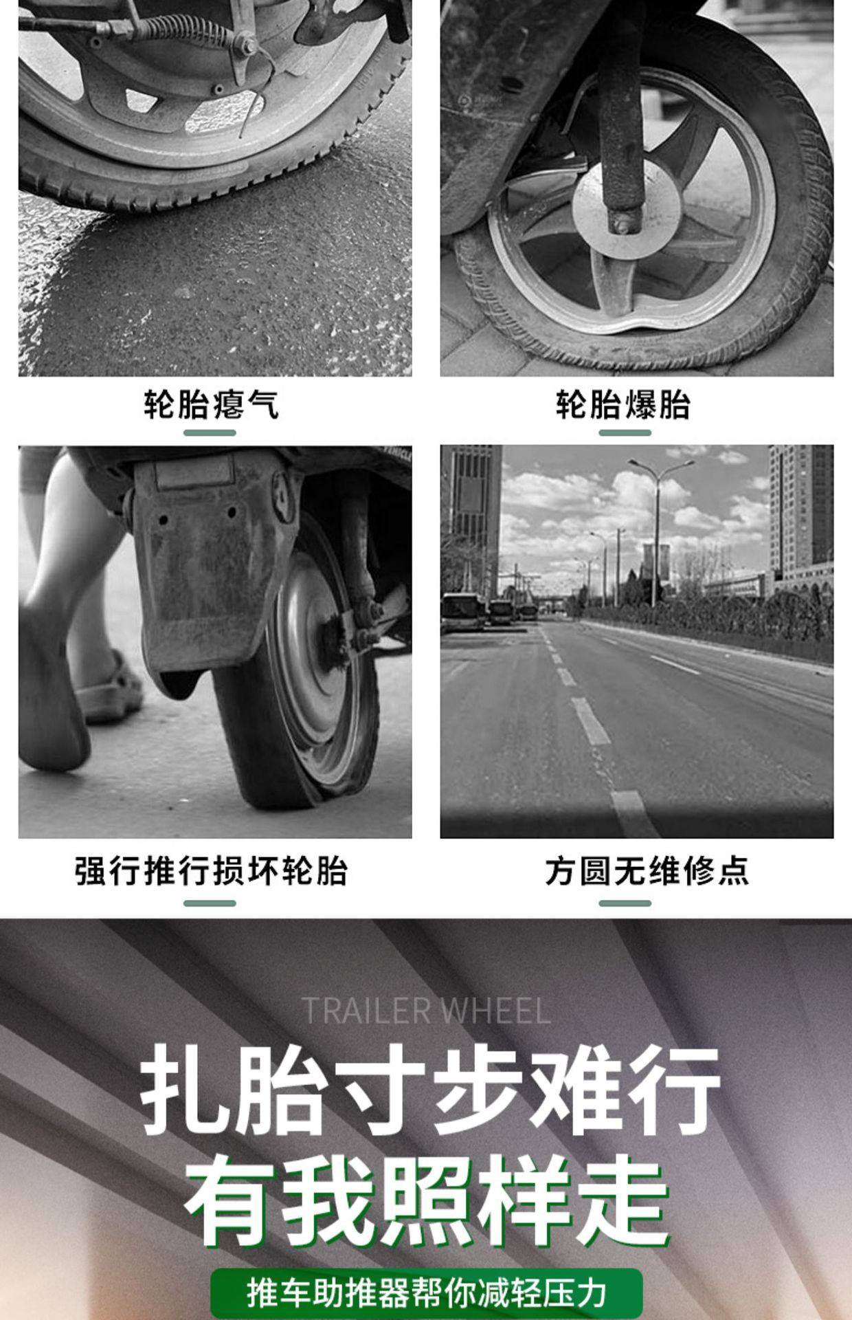 Усилитель для электрических транспортных средств, аккумулятор, прицеп для мотоцикла, артефакт для перемещения автомобиля, универсальное колесо для экстренных ситуаций, тележка с электропомощью, проколотая шина