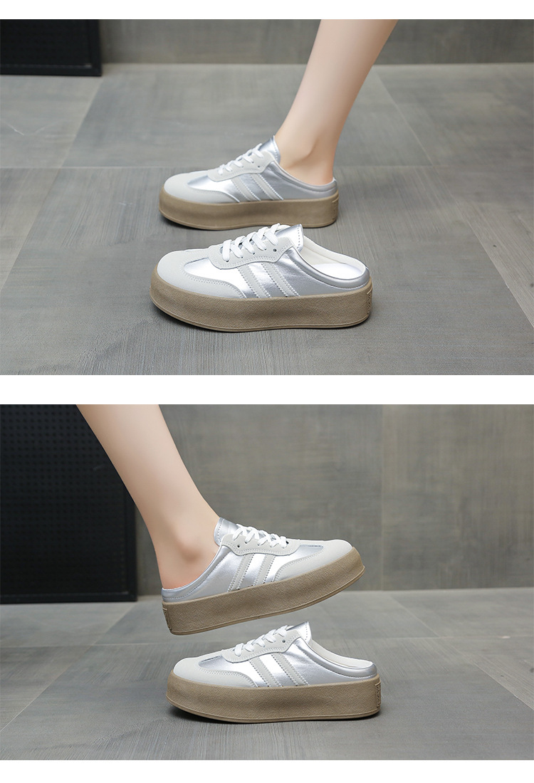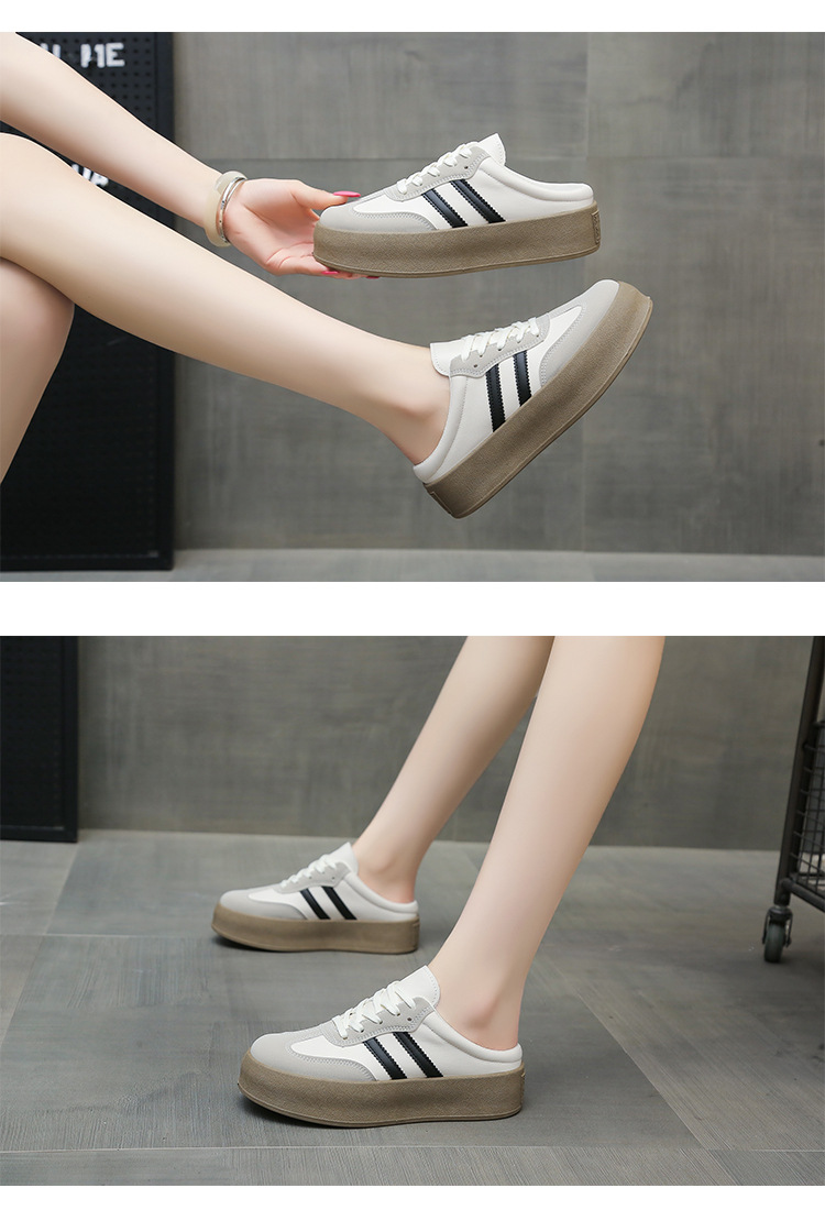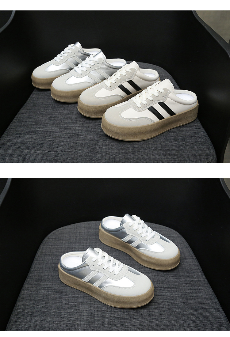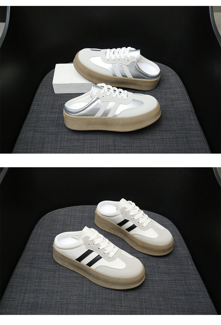 Тапочки с толстой подошвой и закрытым носком для женщин, новое летнее изделие 2025 года, белые без каблука, полутапочки
