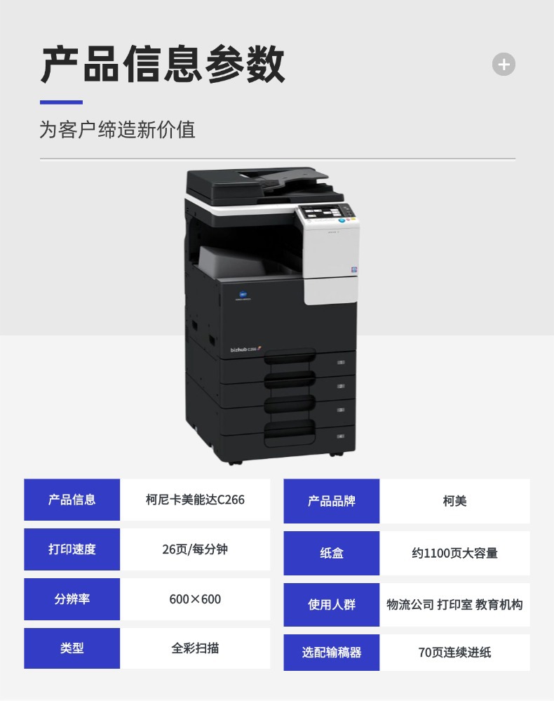 Konica C266 Копир Печать и сканирование Все-в-одном Большой цветной лазерный офисный коммерческий прокат