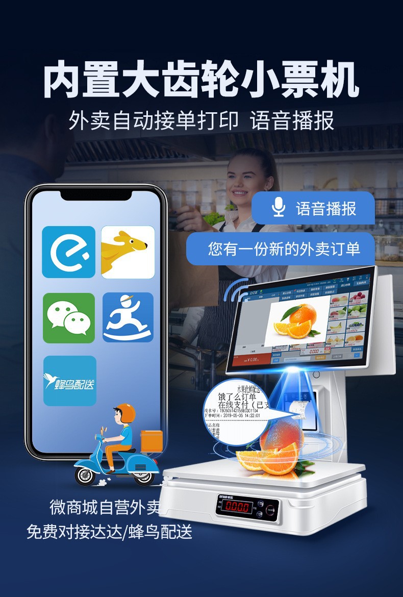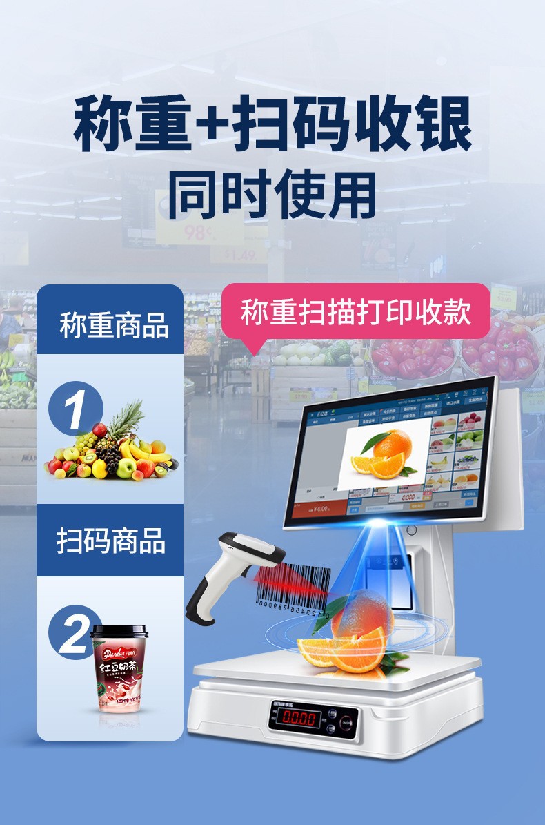 Интеллектуальный кассовый аппарат с определением товаров, весы все-в-одном для фруктовых магазинов, овощей, готовой еды, закусок, кассовая система для удобных магазинов