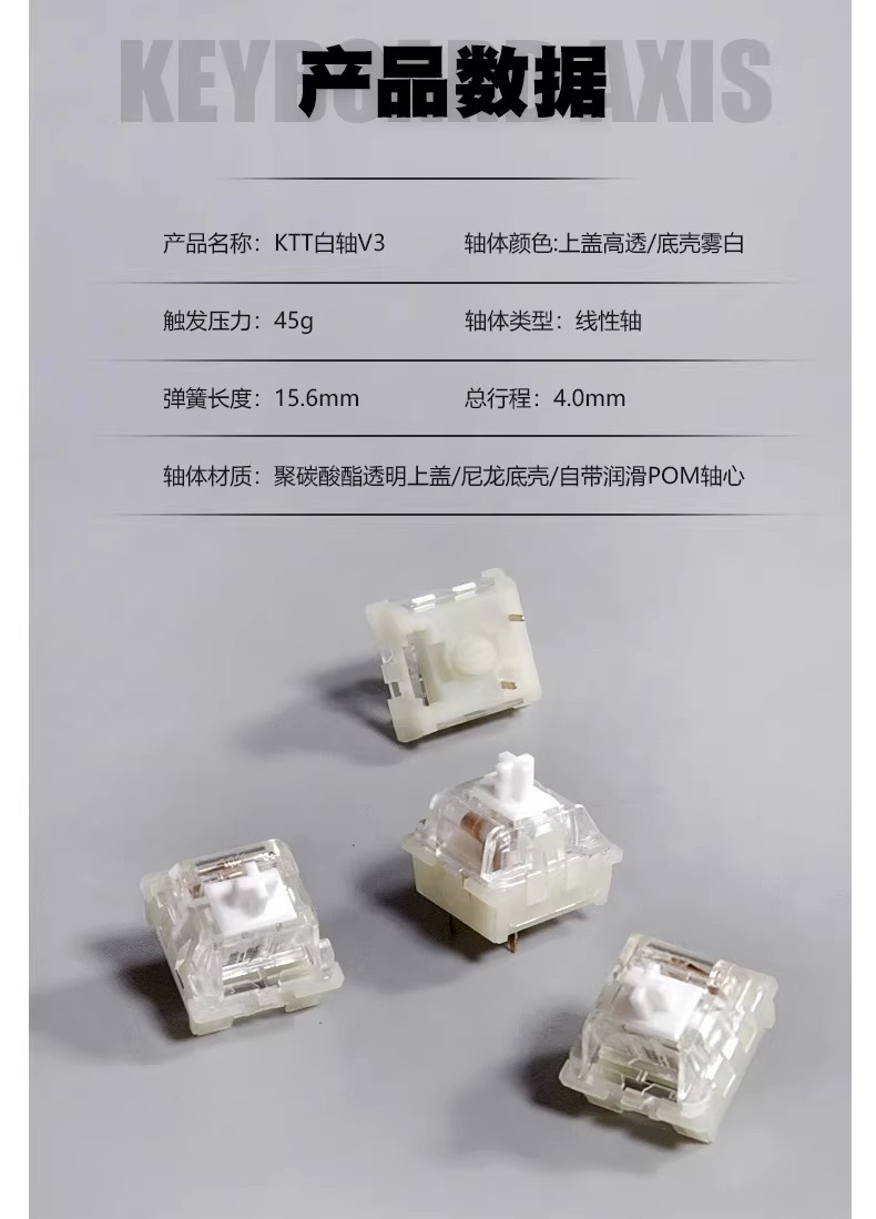 Ktt Kang белая ось V3, механическая клавиатура, DIY, горячая замена, трехножные линейные аксессуары