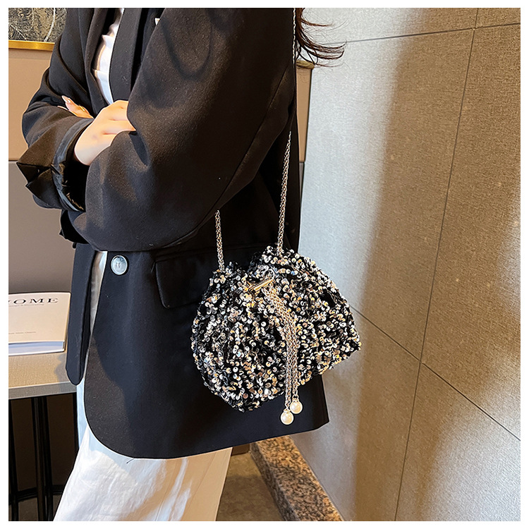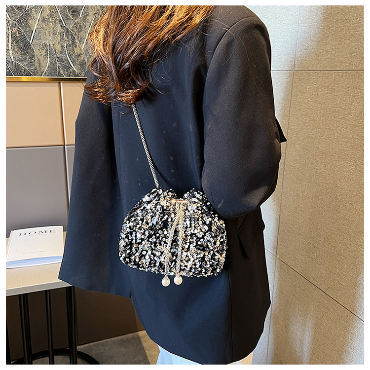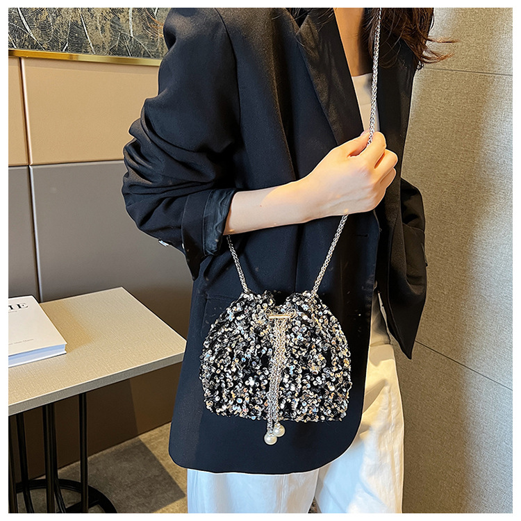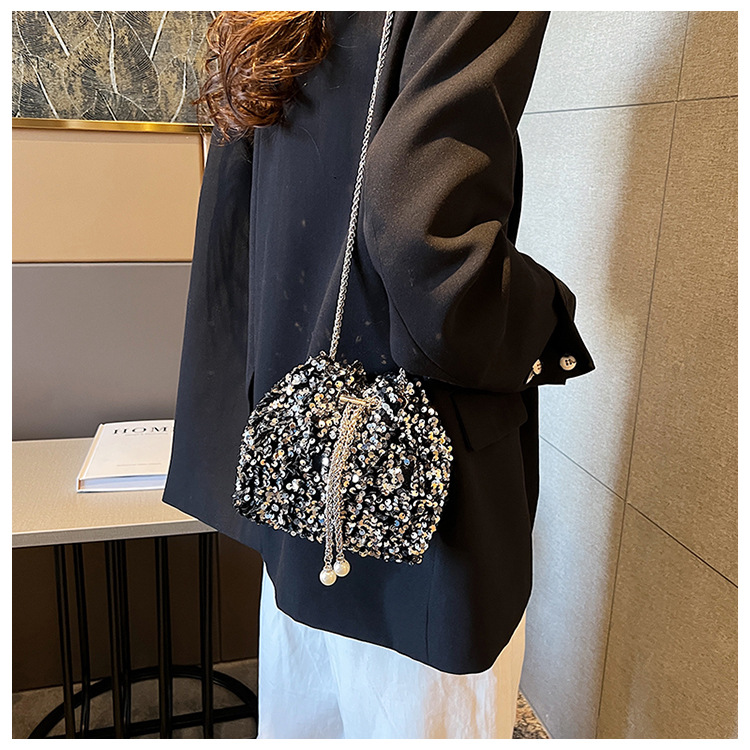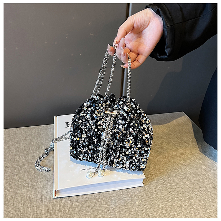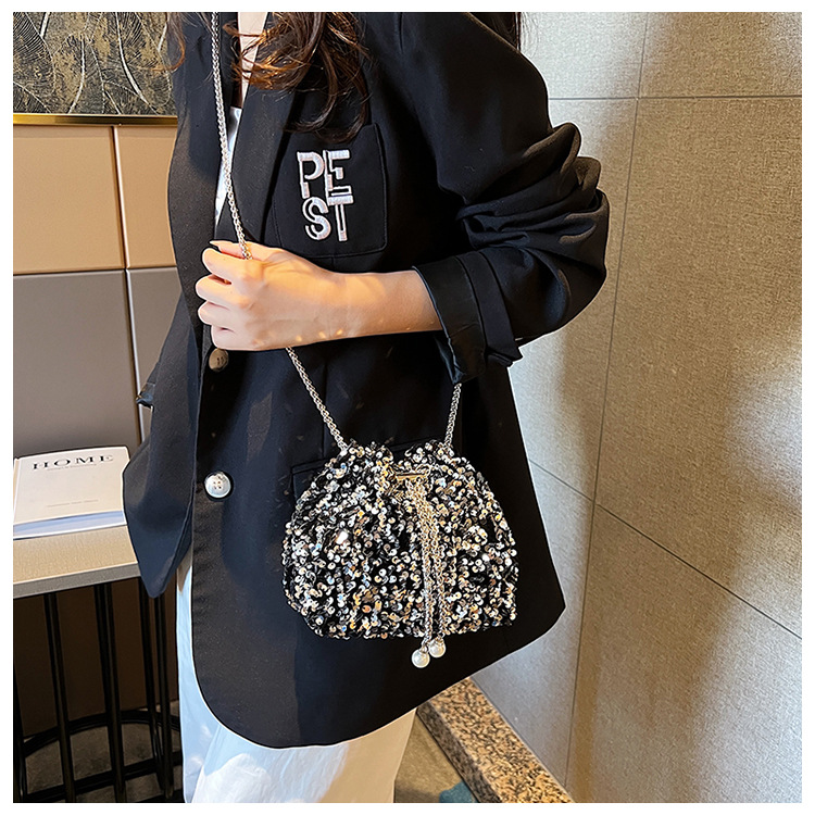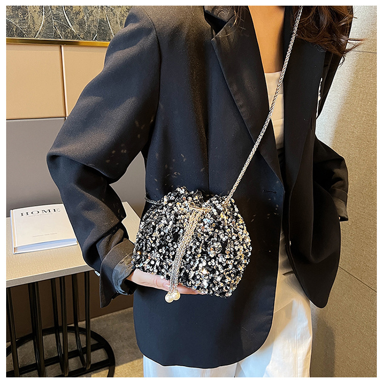 Легкая персонализированная сумка-ведро с цепочкой и пайетками для женщин 2025 Новый стиль вечерняя сумка экспорт популярная одноплечная сумка через плечо