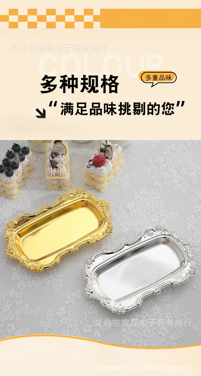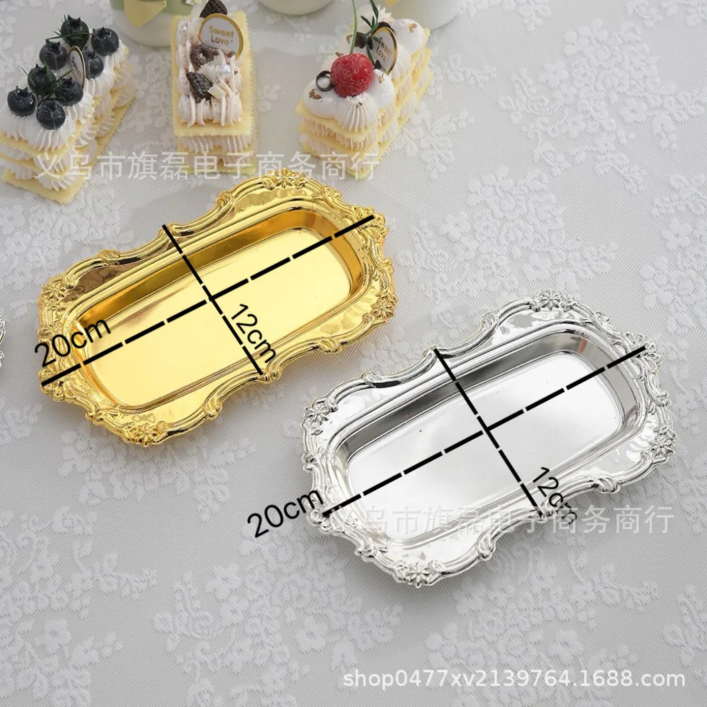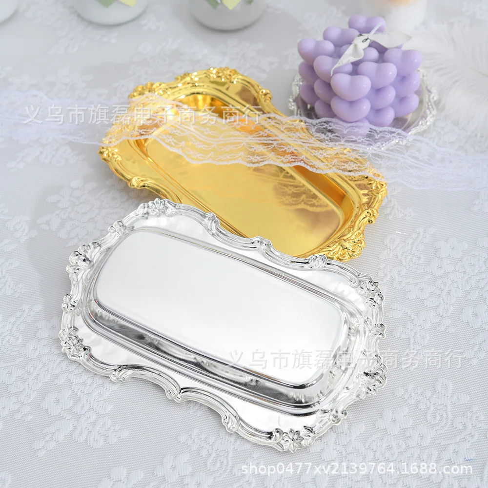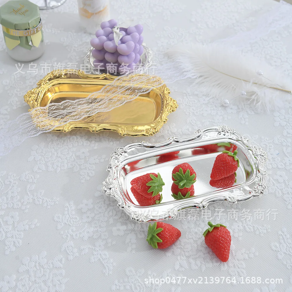 Доступный роскошный металлический поднос с золотой окантовкой, серебряный поднос для закусок, фруктов и тортов, прямоугольная тарелка для подачи