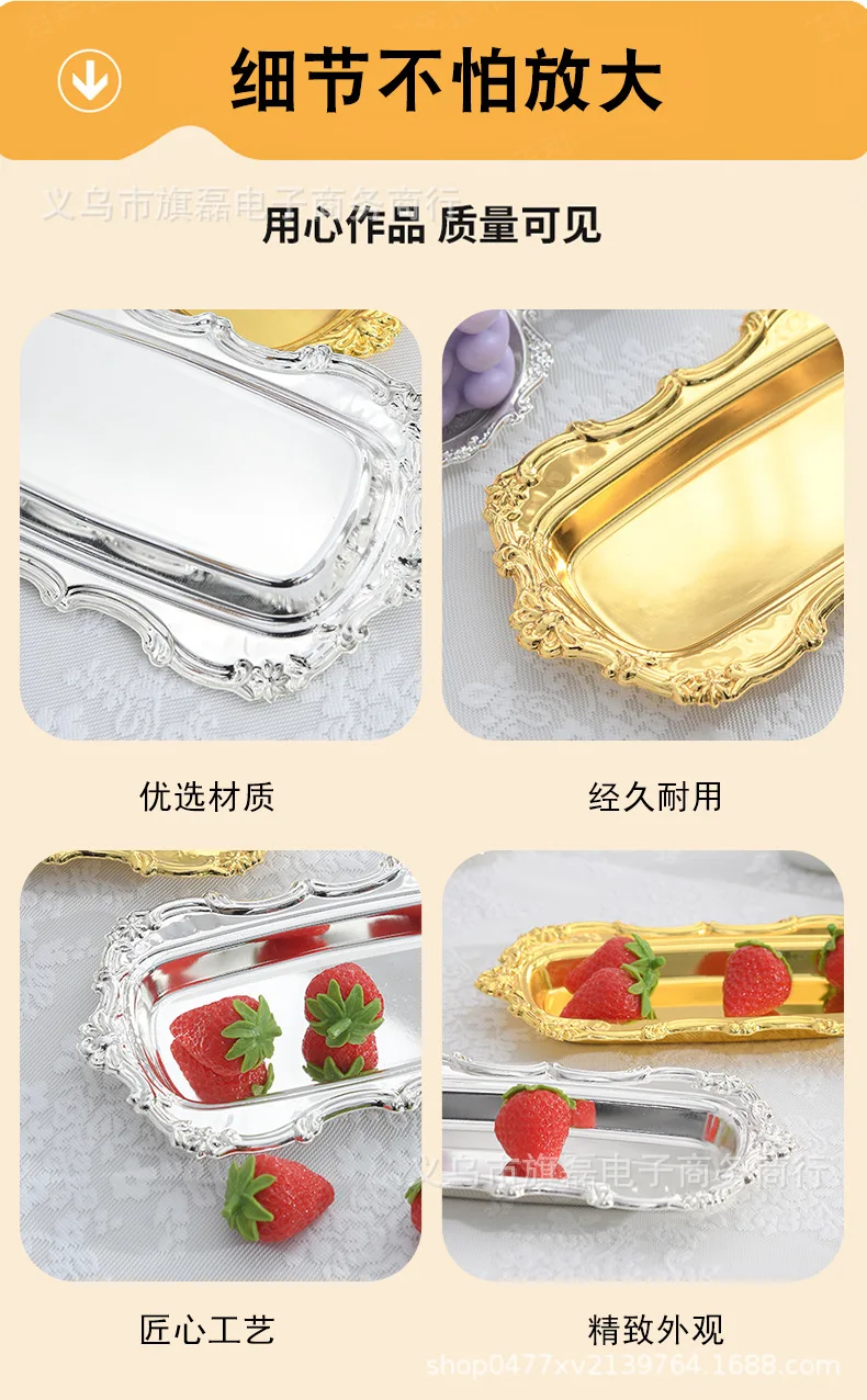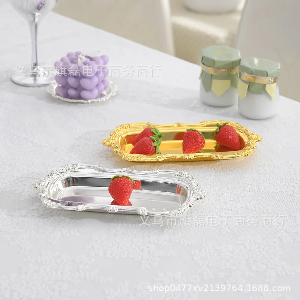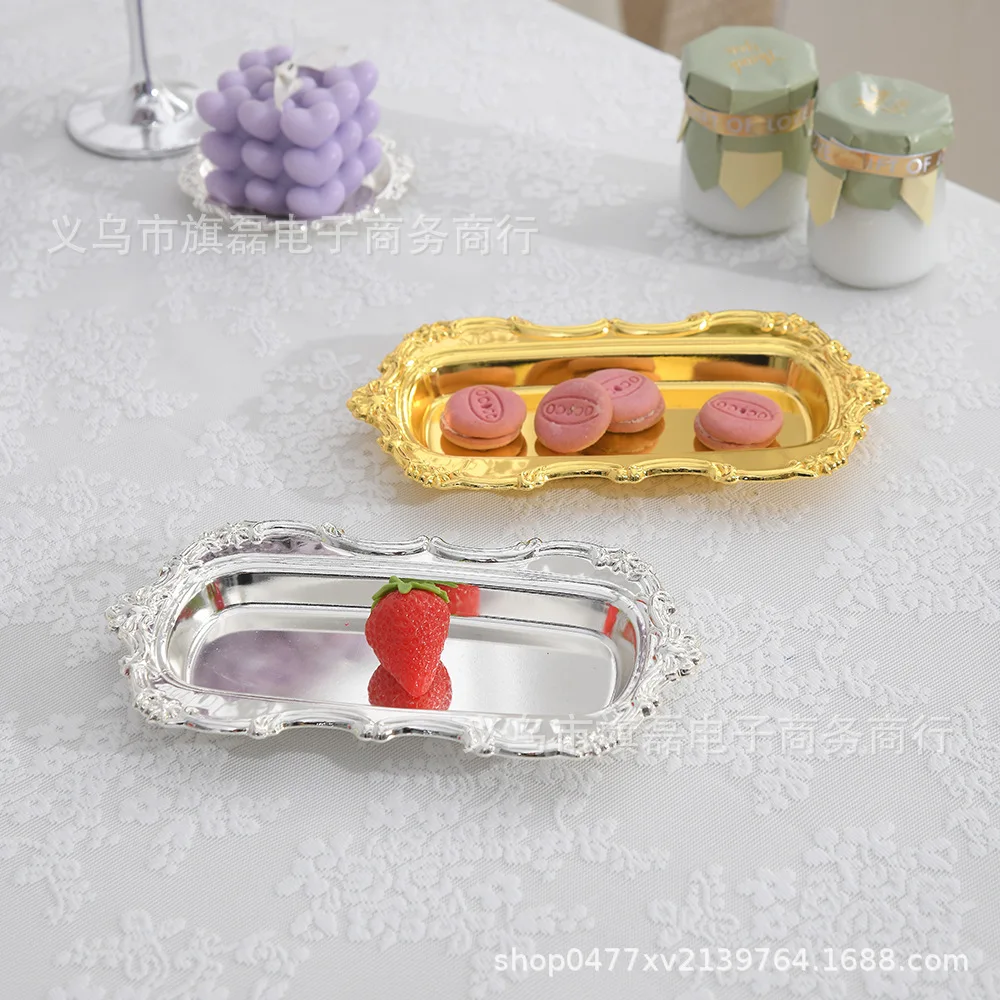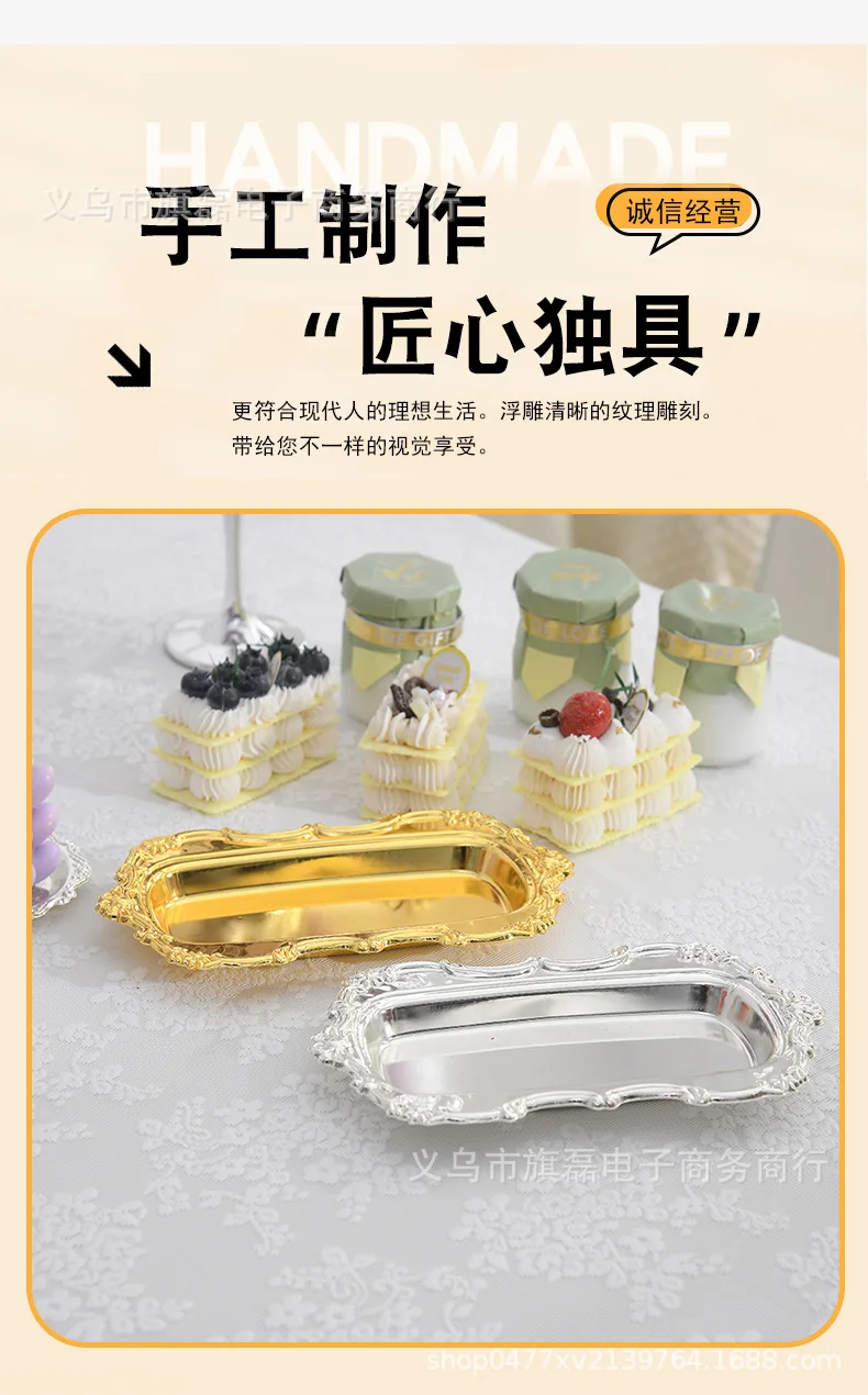 Доступный роскошный металлический поднос с золотой окантовкой, серебряный поднос для закусок, фруктов и тортов, прямоугольная тарелка для подачи
