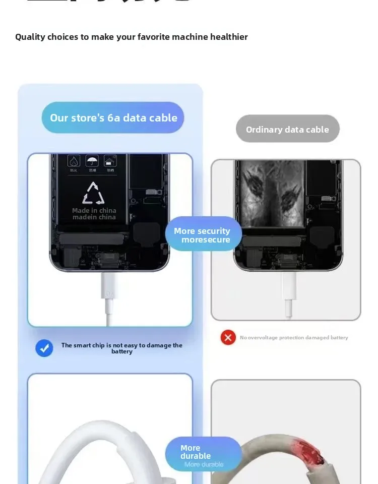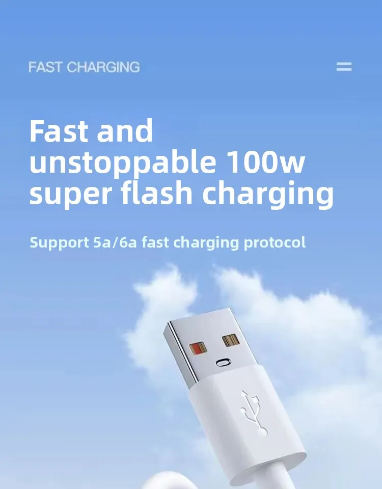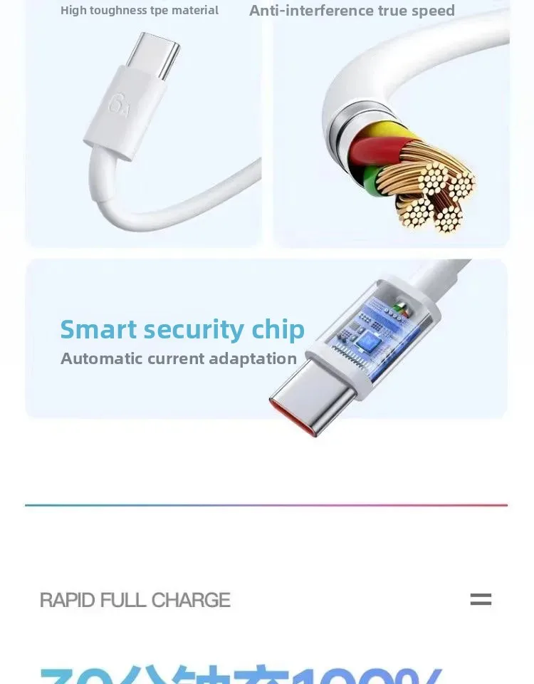 - High Current Capacity : With a high current capacity of 6A, this data cable can handle heavy-duty charging tasks, making it ideal for devices that require quick and efficient power delivery.
