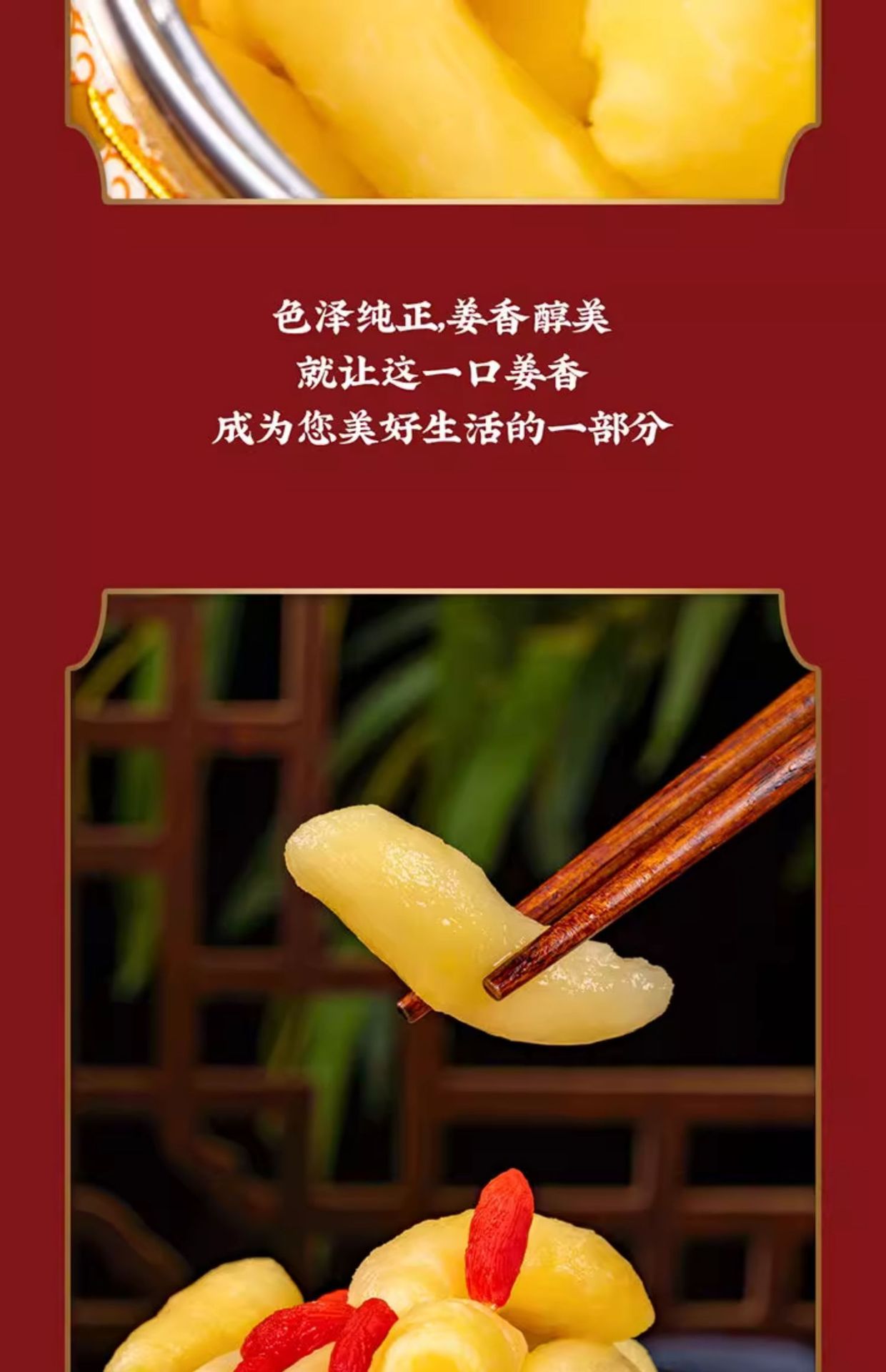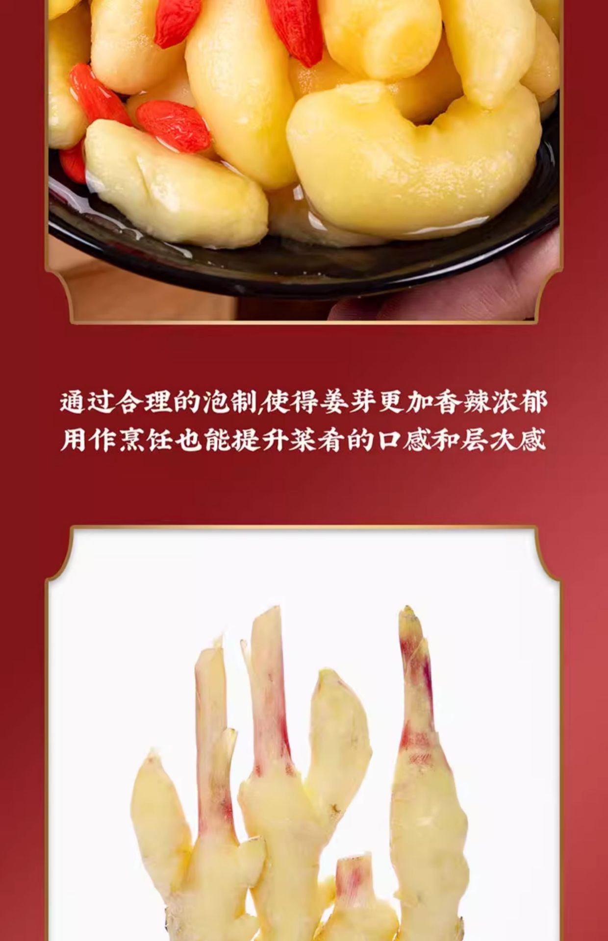 Ягоды Годжи, замоченные в свежих побегах молодого имбиря, освежающие сладко-кислые ломтики имбиря в уксусе, маринованный молодой имбирь для риса
