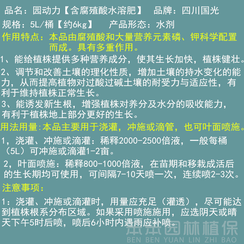 Водорастворимое удобрение Guoguangyuan Power с гуминовыми кислотами, листовое удобрение, упаковка 5 л, специальное удобрение с фосфором и калием для цветов и саженцев для стимуляции корней и укрепления стеблей