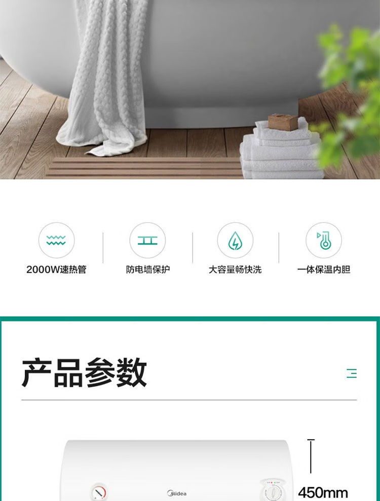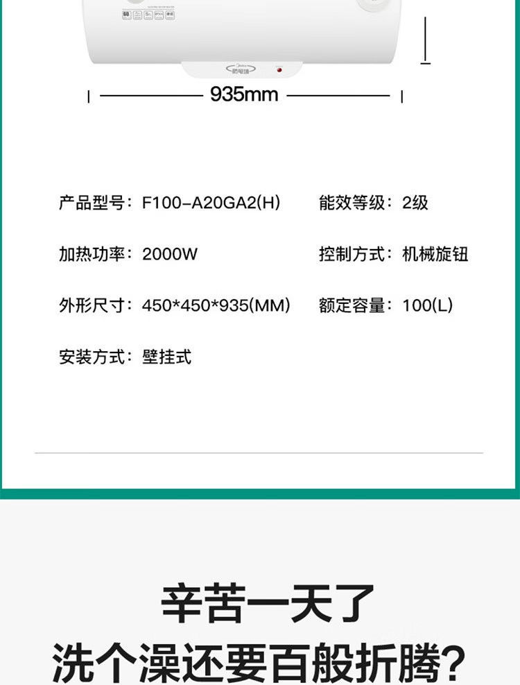 Электрический водонагреватель Midea F40-A20Ga2(H) F50-A20Ga2(H) F60-A20Ga2(H) 80/100L