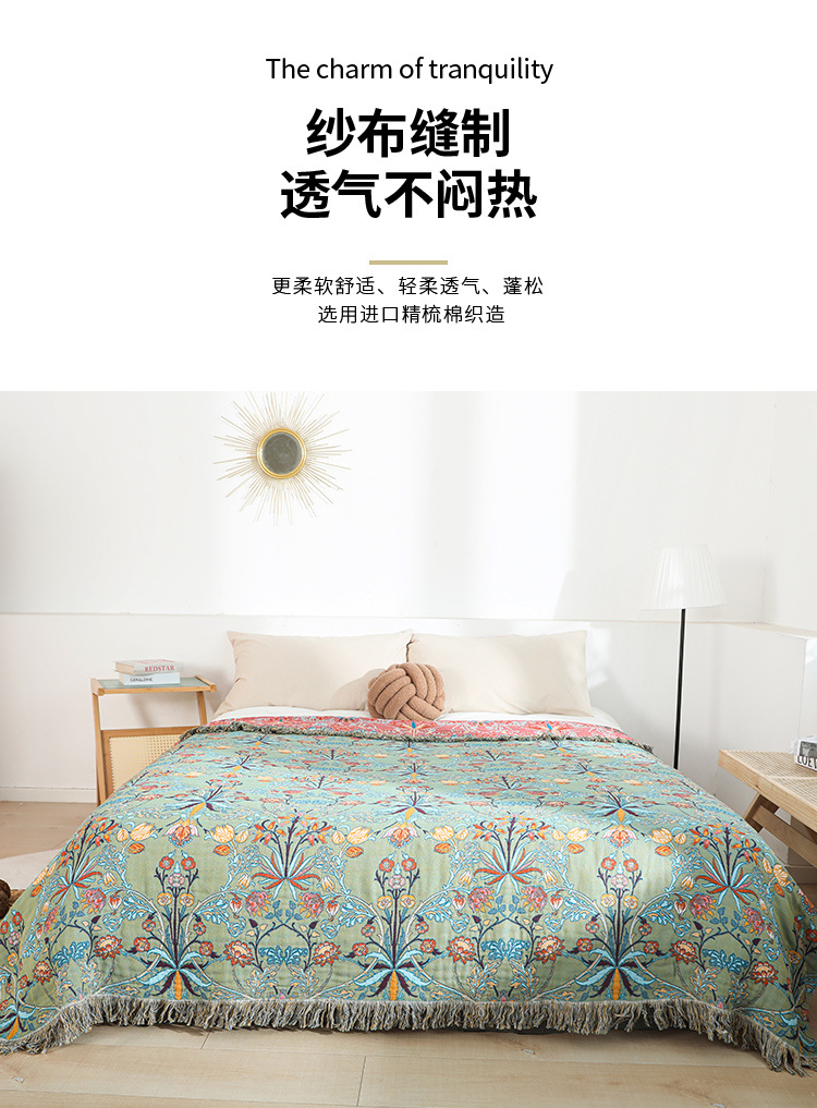 Плед из тонкой хлопковой марли Green Plum Yuyu, односпальный и двуспальный