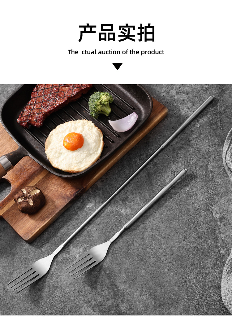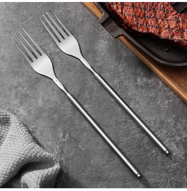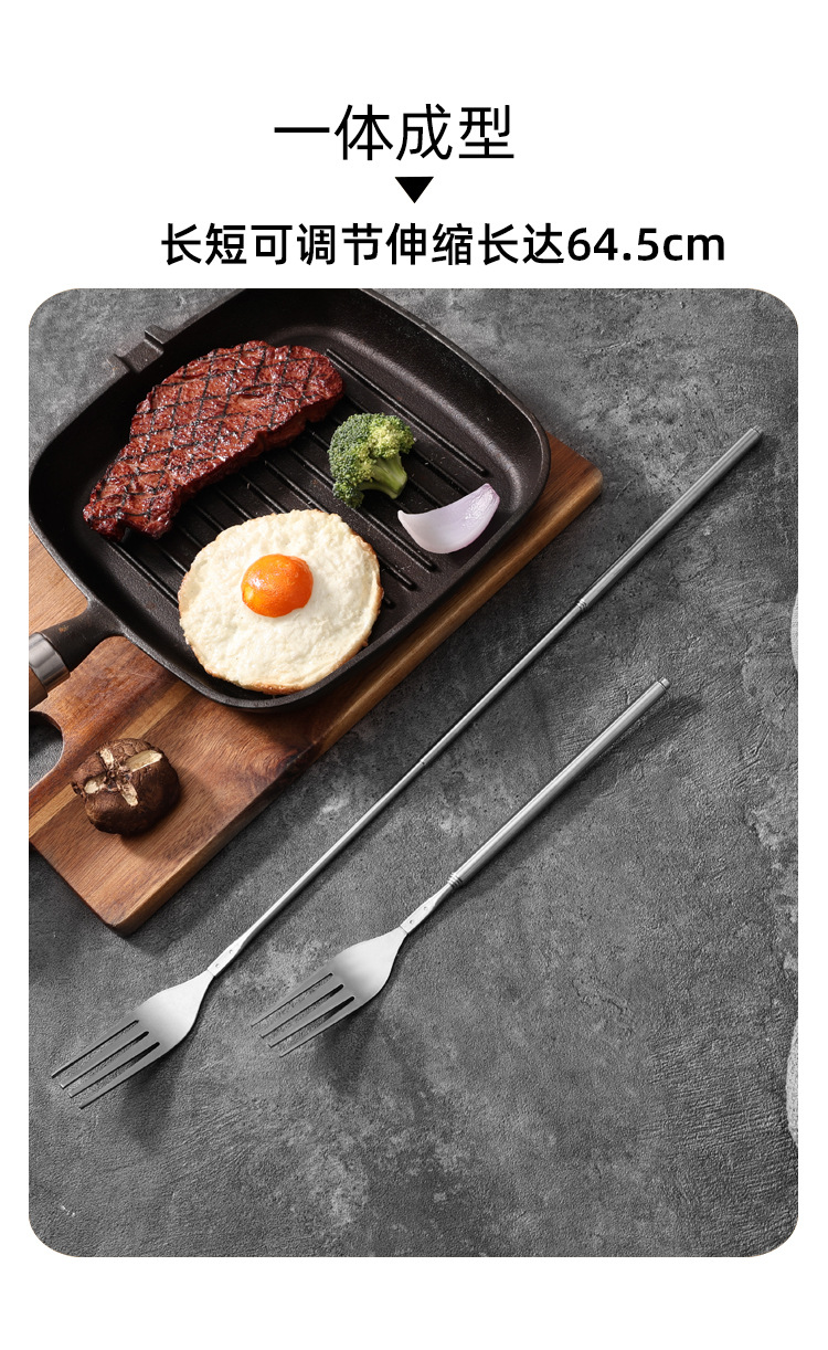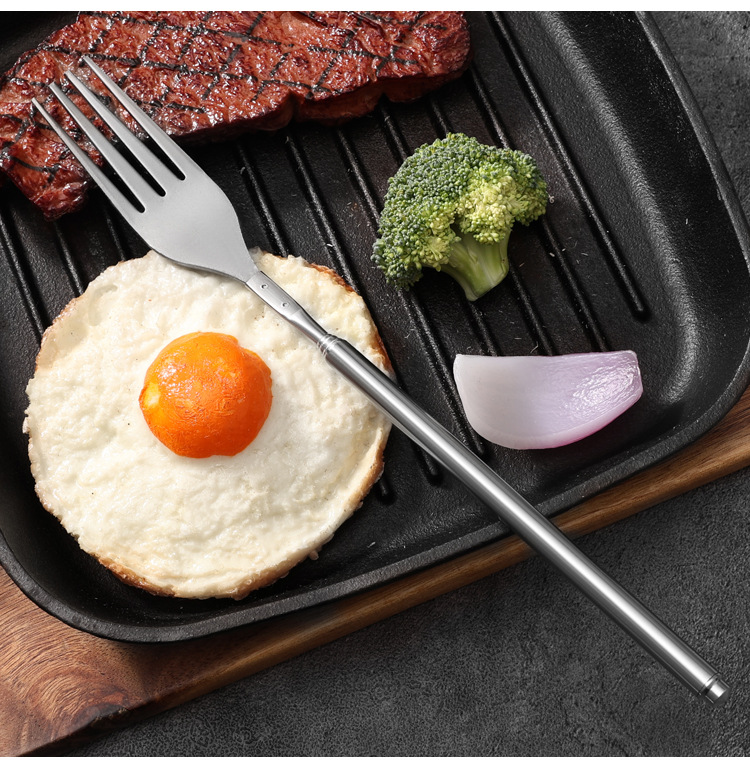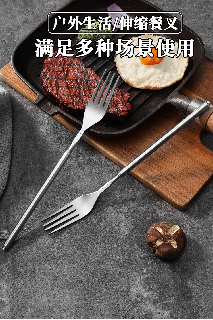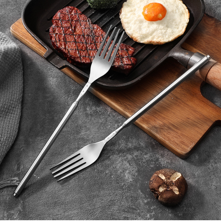 Готовые столовые приборы из нержавеющей стали, телескопические, для западной кухни, портативные, для пикников и кемпинга, с длинными вилками