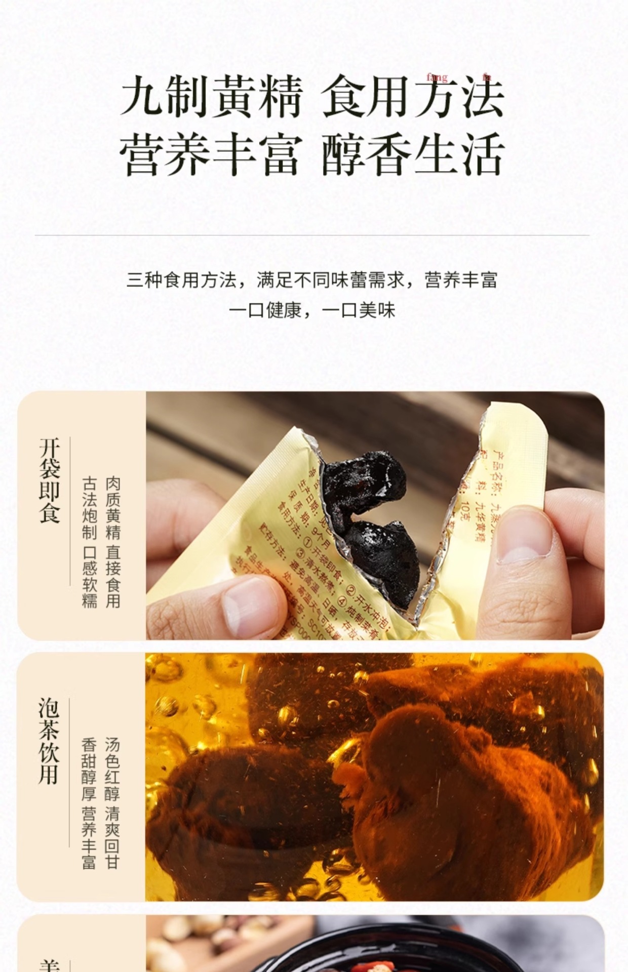 Девять раз пропаренный и сушеный полигонатум, полигонатум с горы Цзюхуа, китайская травяная медицина, чай из девять раз пропаренного и сушеного полигонатума, девять раз пропаренный и готовый к употреблению полигонатум, замоченный в воде для питья
