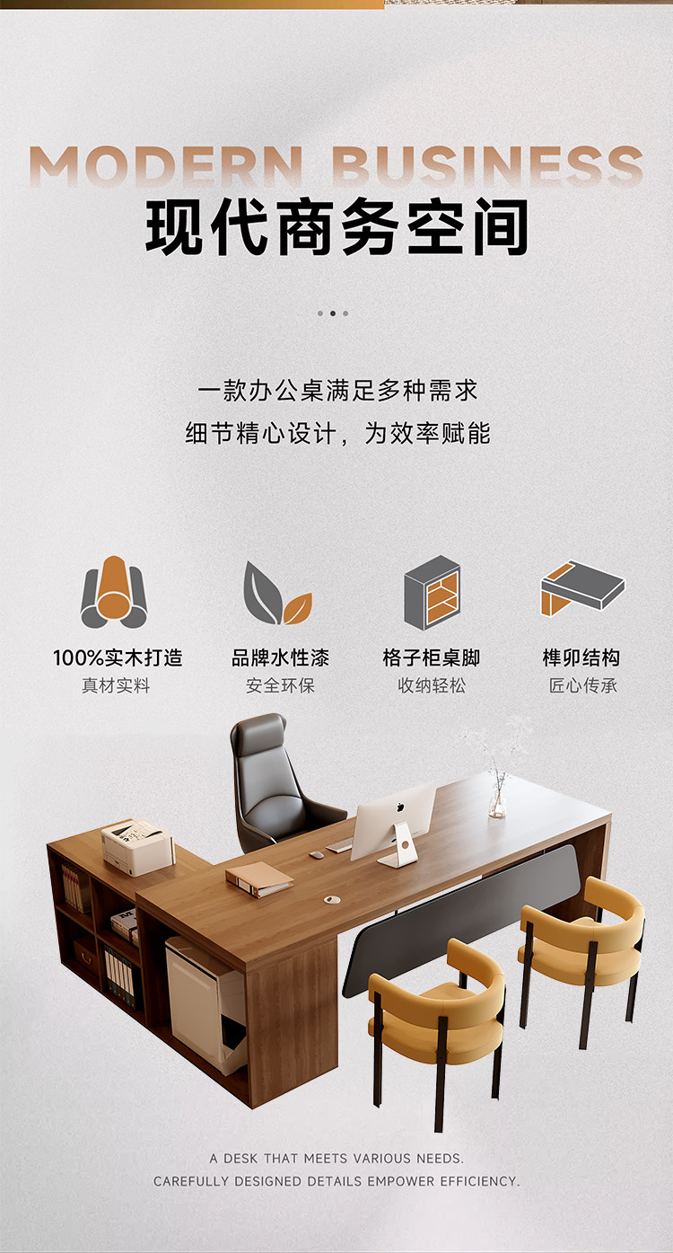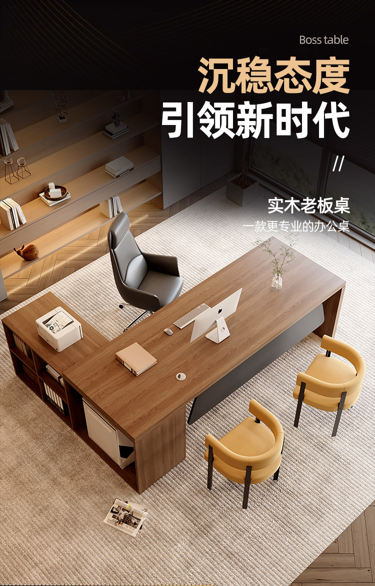 Стол из массива дерева, современный минималистичный офисный стол Босс, стол для менеджера, рабочая станция, компьютерный стол со шкафчиком сбоку