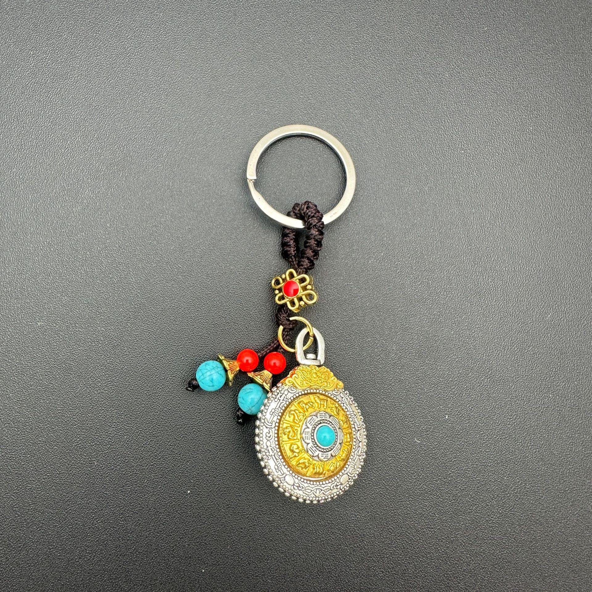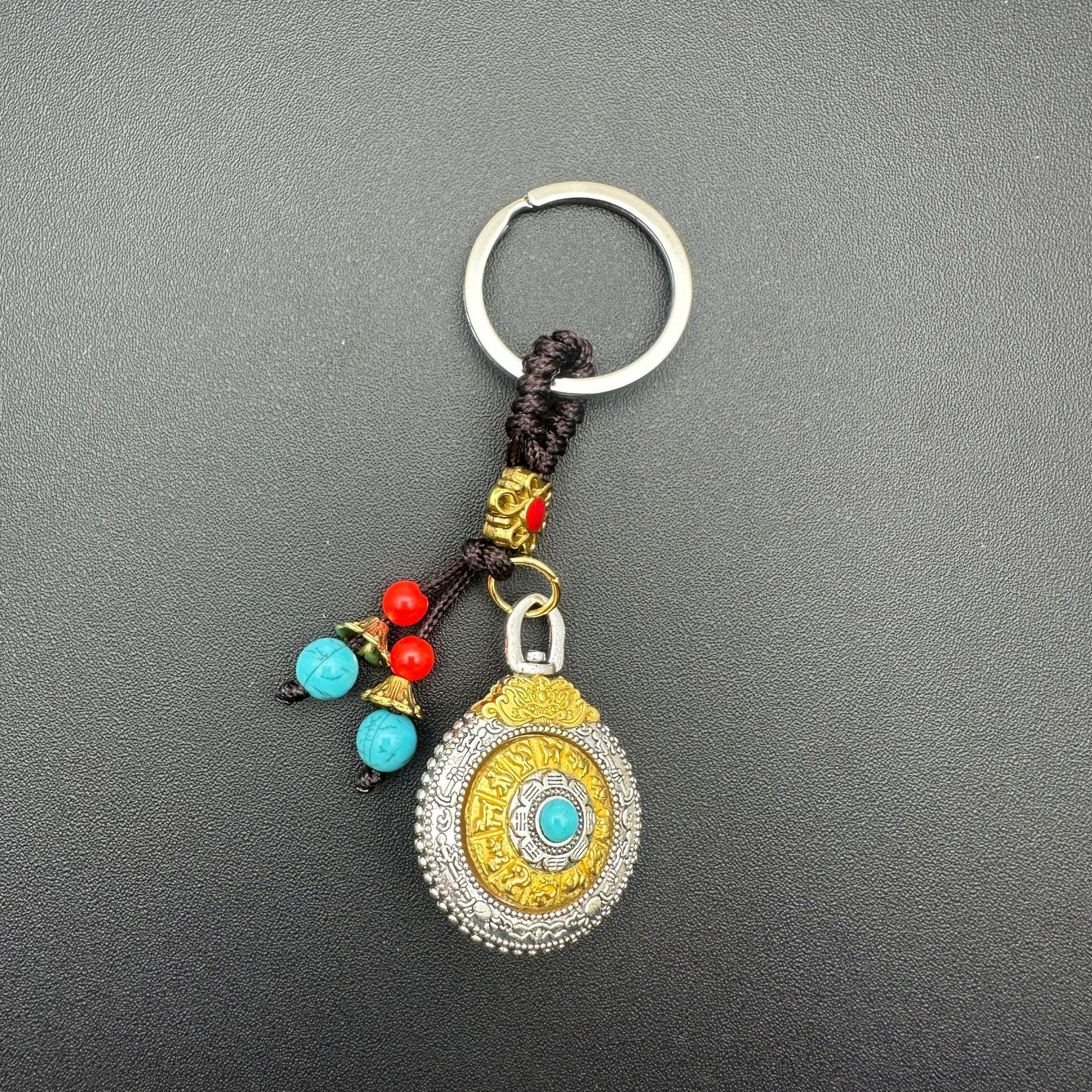 Подвеска из имитации серебра Xizang, двусторонняя, вращающаяся, девятигранная, двенадцать знаков зодиака, кулон на пояс, ключница
