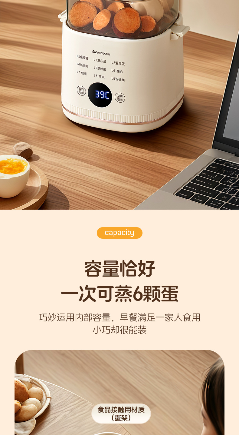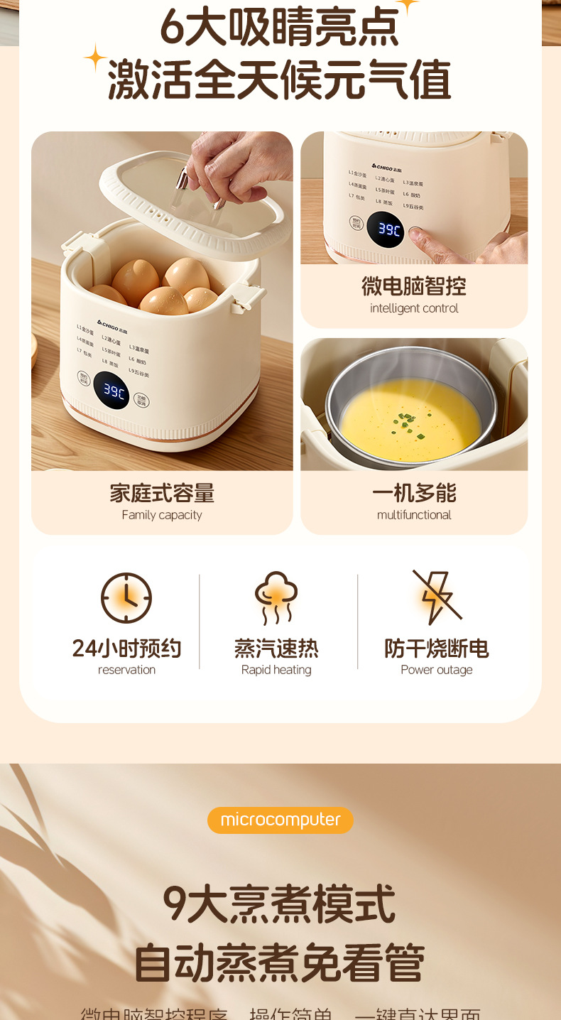 ![]() | Single model [24-hour reservation/accurate temperature control] equipped with egg steaming rack | Multifunctional egg cooker | ¥26.0 / ≈ 314 ₽ | 987 | 5823917256697 | |