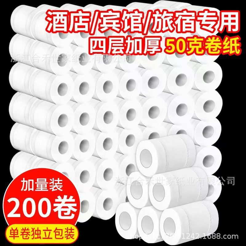 Туалетная бумага 50г 4-слойная коммерческая маленькая рулонная бумага для гостиниц, туалетная бумага для ванной комнаты, 200 рулонов/упаковка