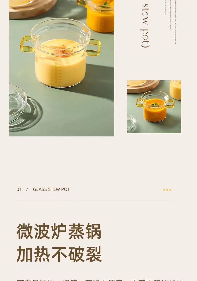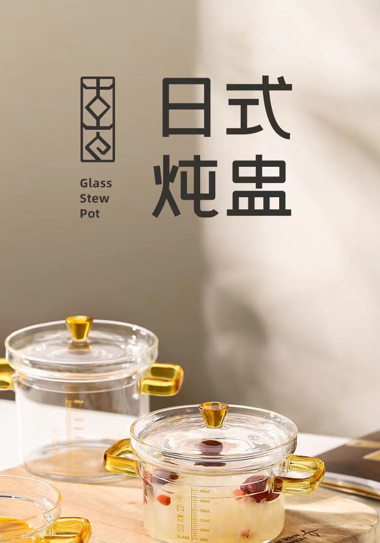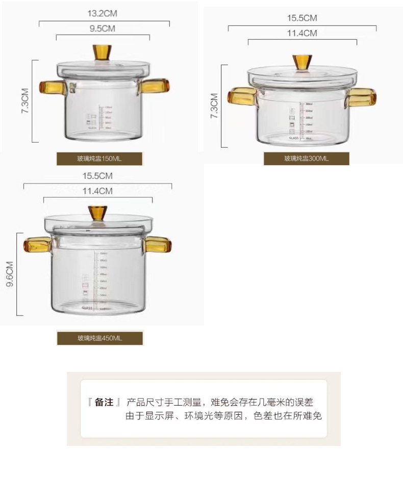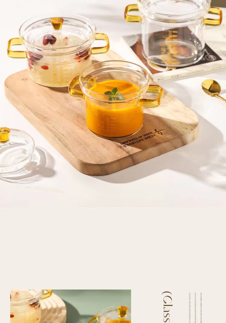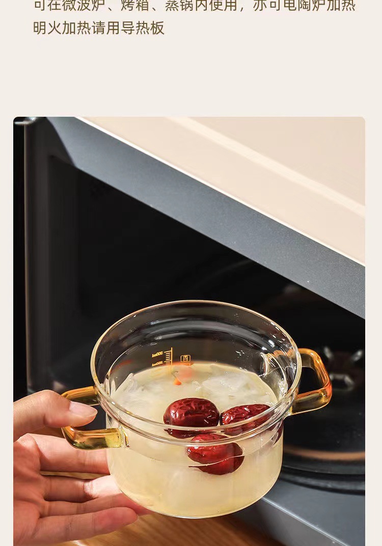 Утолщенная кастрюля с двойными ручками, термостойкая, кастрюля из высокоборо-силикатного стекла с крышкой