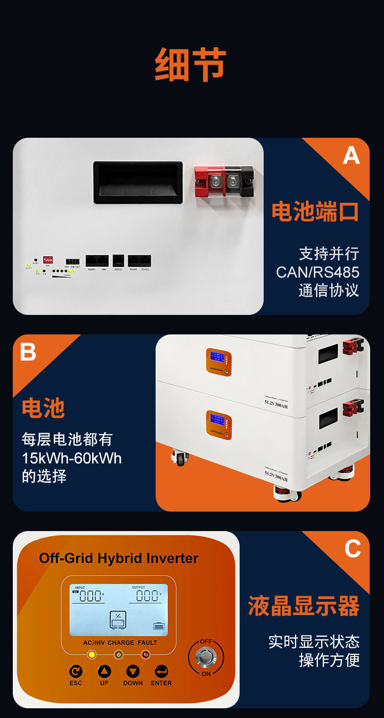 Оптовая продажа бытовых аккумуляторов для хранения энергии, фотоэлектрическая система энергоснабжения 60КВт, безопасное расширяемое штабелируемое энергоснабжение 30КВт