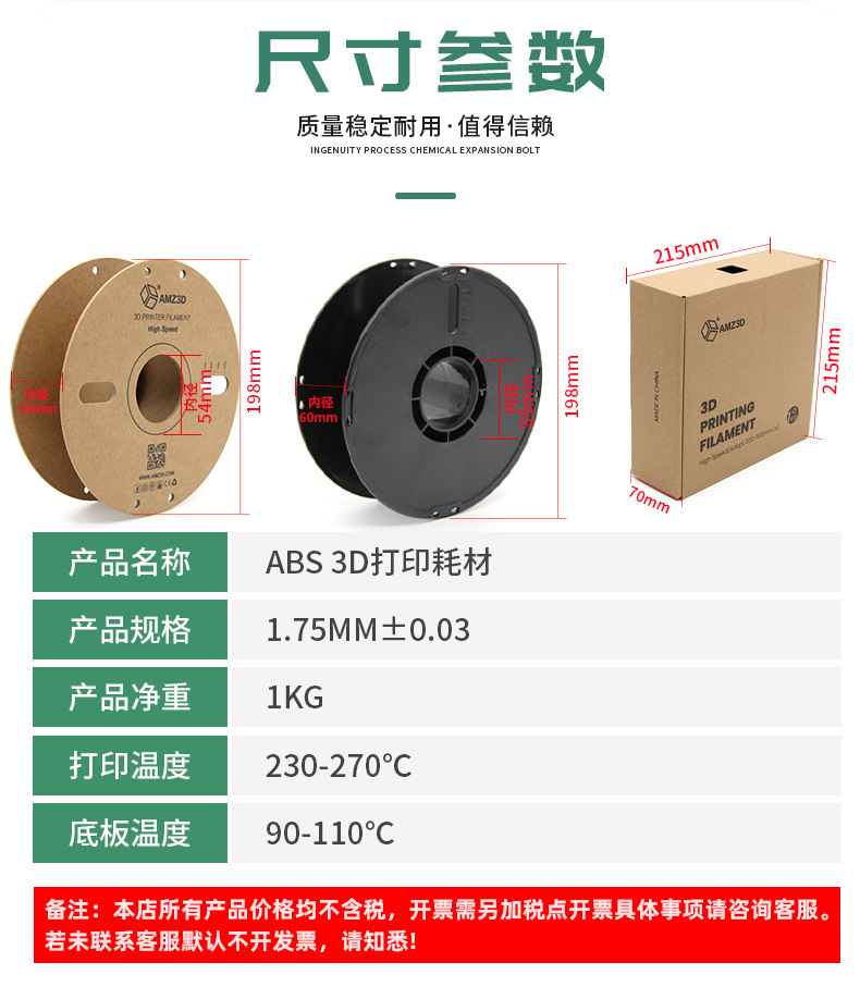 Филамент для 3D печати ABS, одноцветные линии, 1.75мм, высокая прочность, долговечный, ударопрочный, экологически чистый