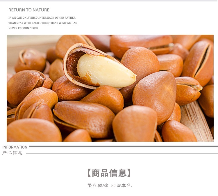 ![]() | [charcoal grilled pine nuts·half a catty]: net content 250g*1 bag [0.5kg about 850 pieces] | ¥32.51 / ≈ 392 ₽ | 2196 | 5825017497831 | |