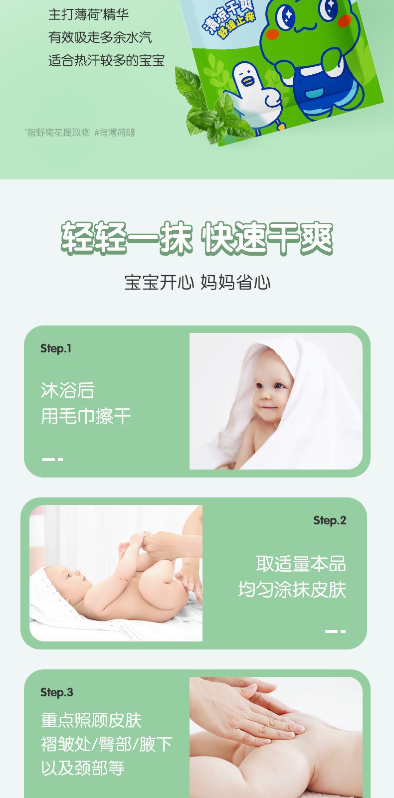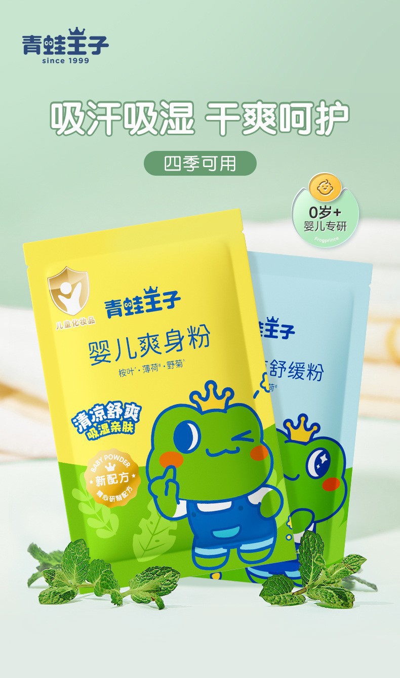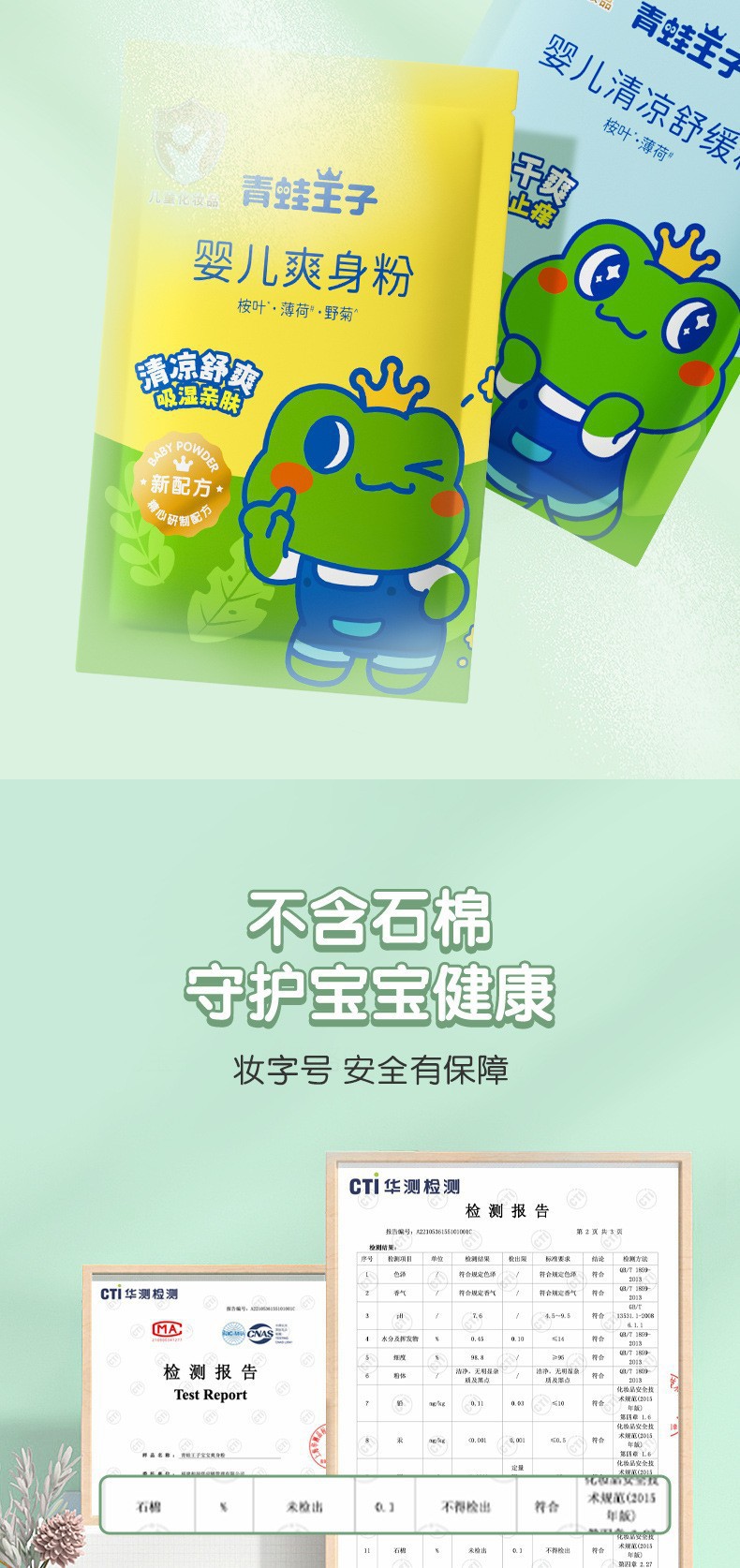 Пудра для младенцев Frog Prince с пуховкой, сухая, противозудная, охлаждающая пудра от потницы 80г