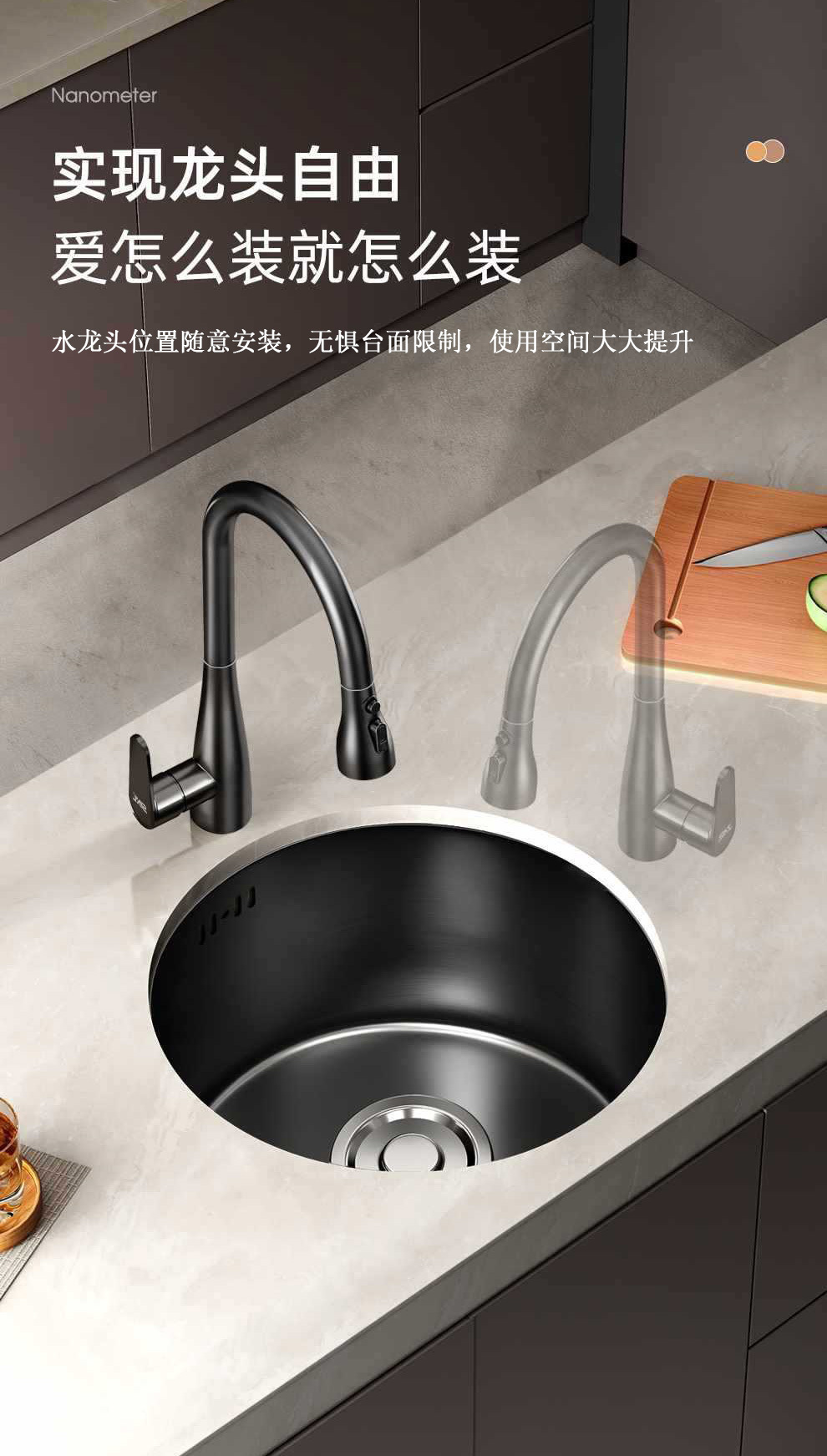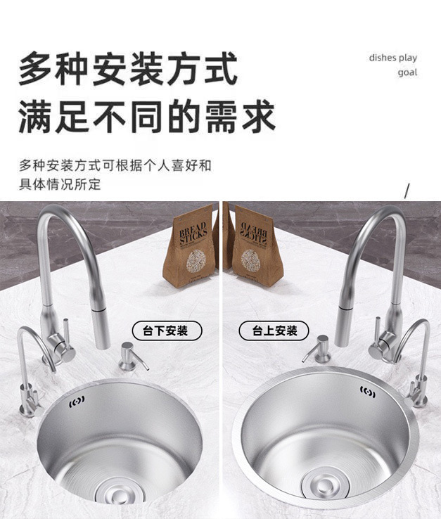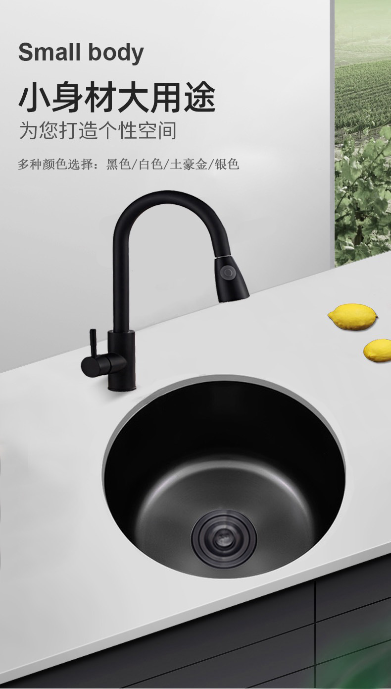 Круглая раковина из нержавеющей стали для кухни односекционная мойка посудомоечная раковина круглая для островного бара маленькая раковина нано черный алмаз