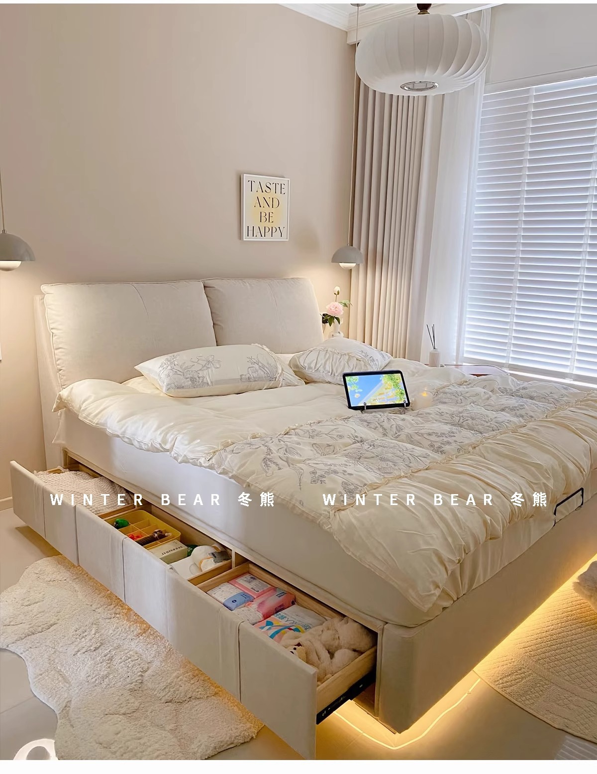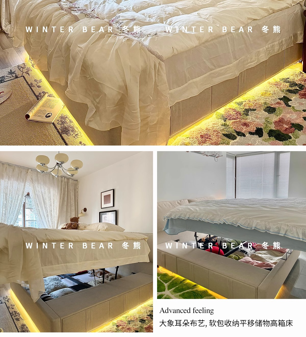 Кровать с хранилищем в виде уха слона, современная простая для спальни, высококачественная двойная кровать с местом для хранения