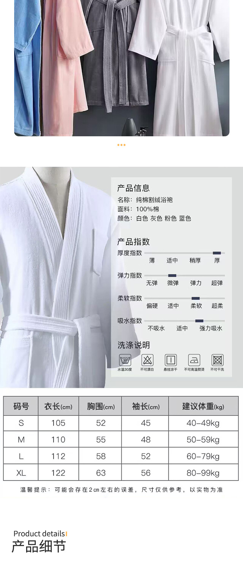 📦 | White four seasons 100% cotton cut velvet bathrobe | S (suitable for under 55kg years old, length bust size sleeve length 105*106*44cm) | ¥65.0 / ≈ 783 ₽ | 500 | 5936376596091 | |