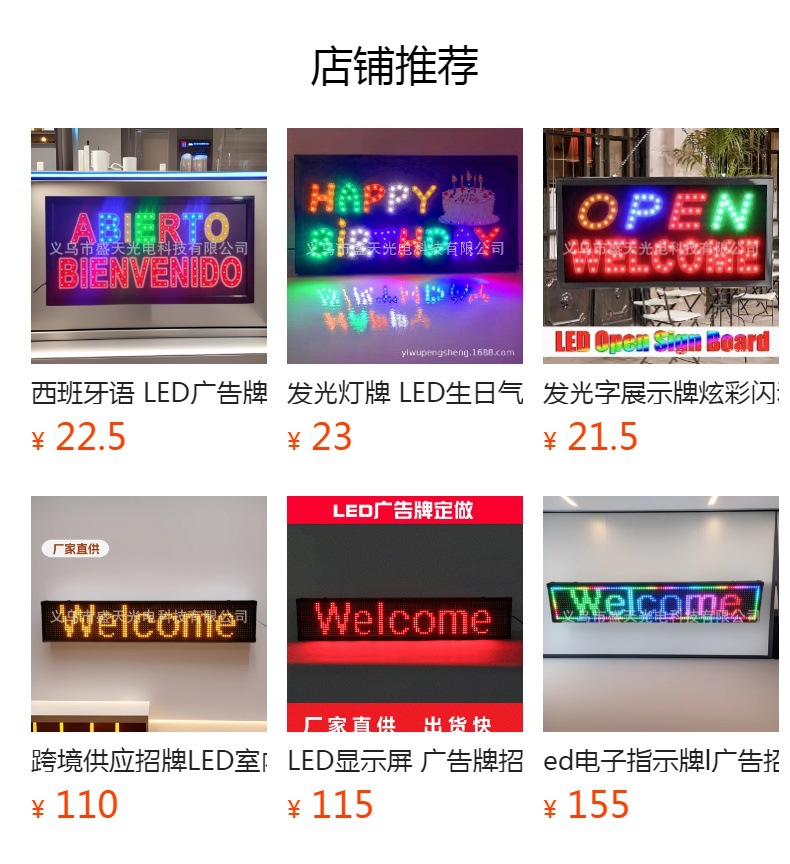 本厂是LED招牌专业生产厂家,大量承接外贸定单,日均产量500-700片。有专人负责设计打样,买家可提供图片或文字按样定制。
