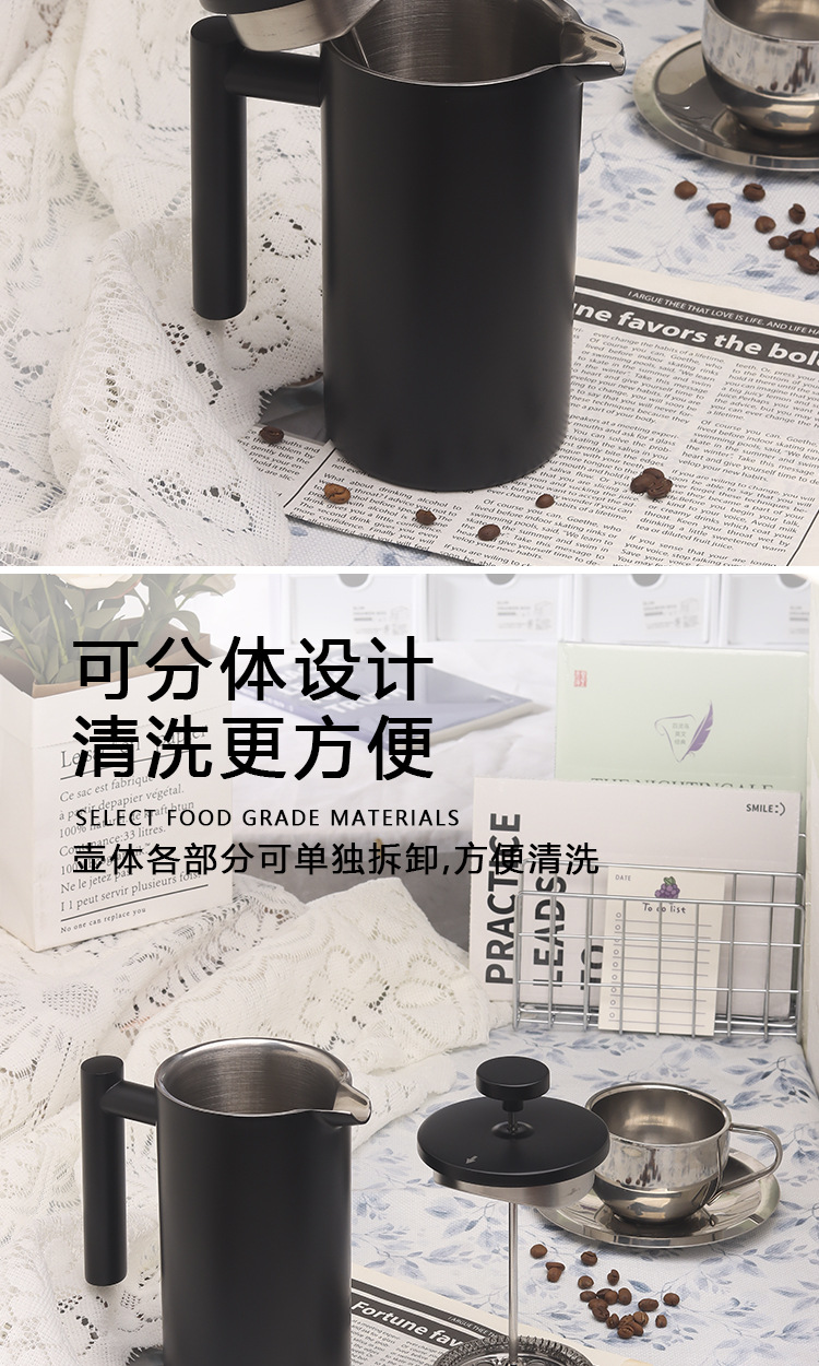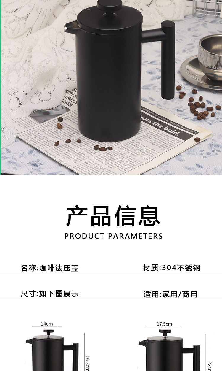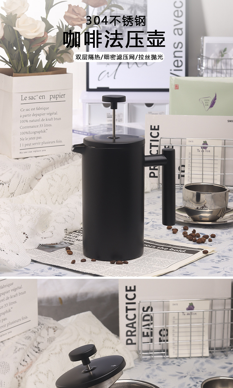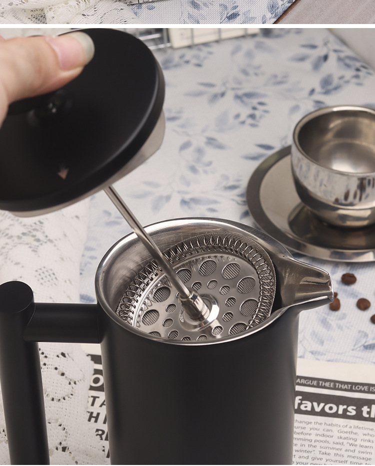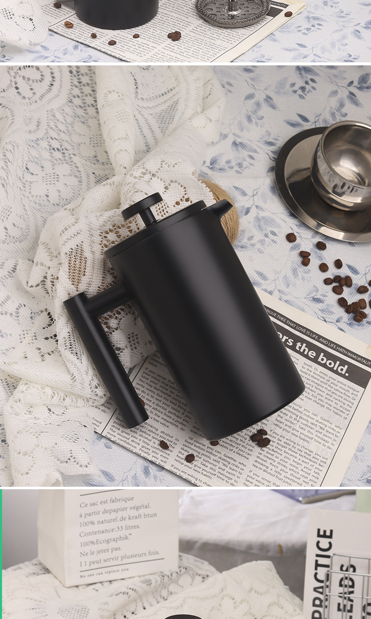 Френч-пресс для кофе, черный, двойная стенка, нержавеющая сталь, для кемпинга, чайник, кофеварка