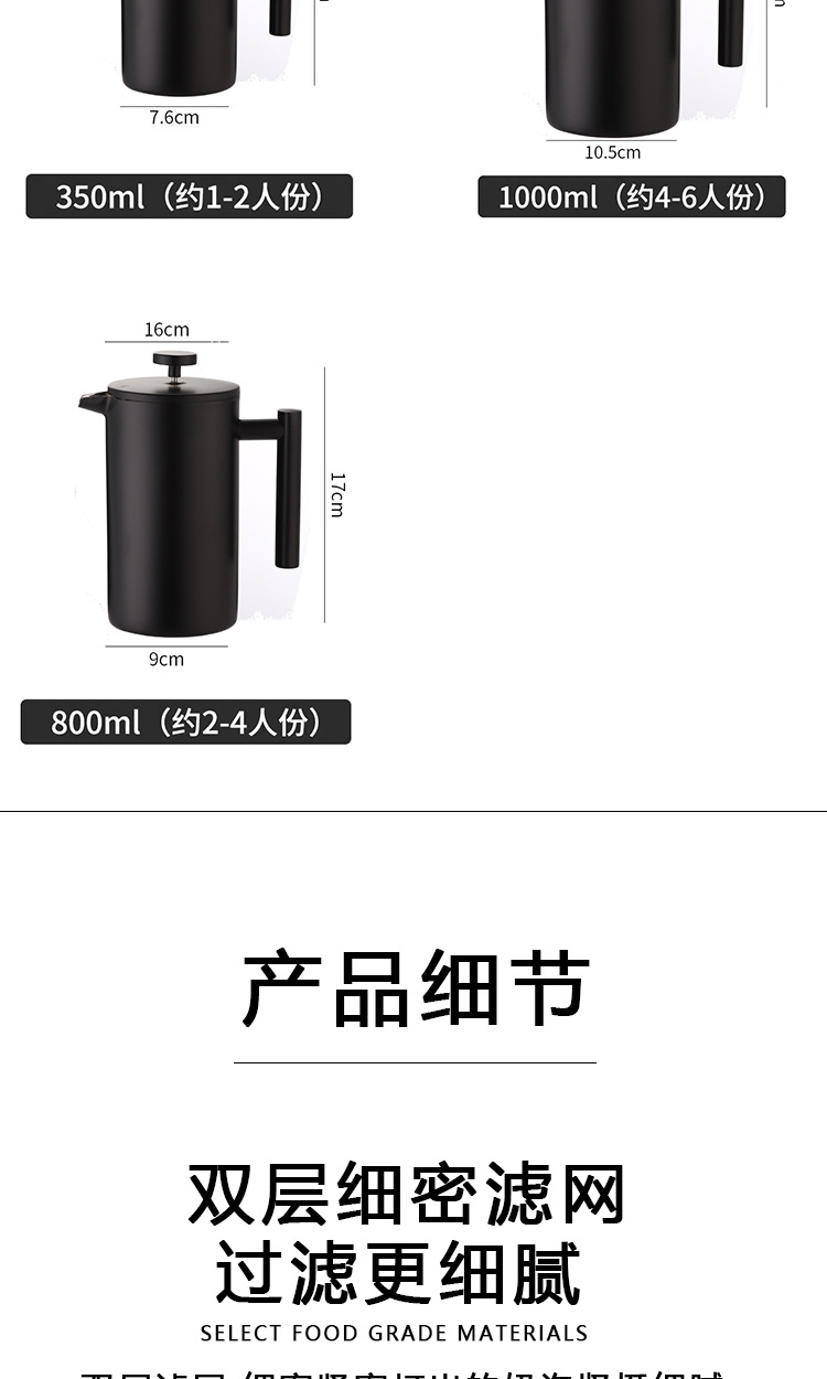 ![]() | Black | 304 stainless steel french press (1000ml) | ¥75.0 / ≈ 913 ₽ | 2000 | 5824079900806 |