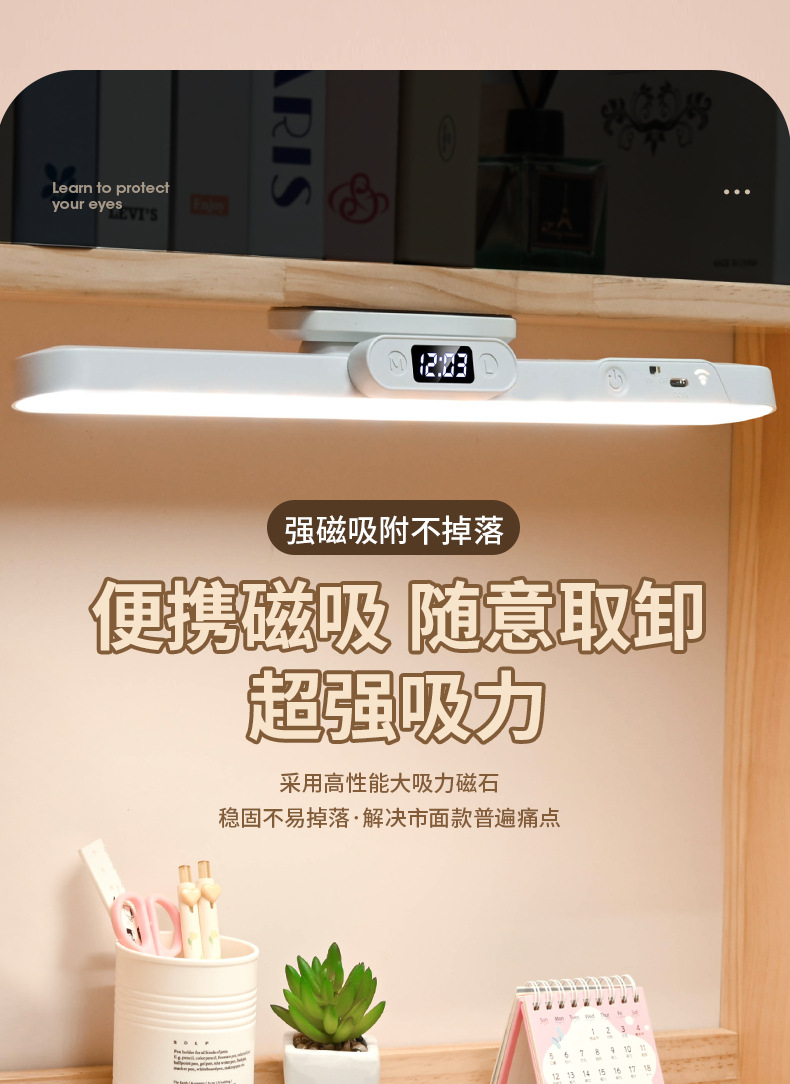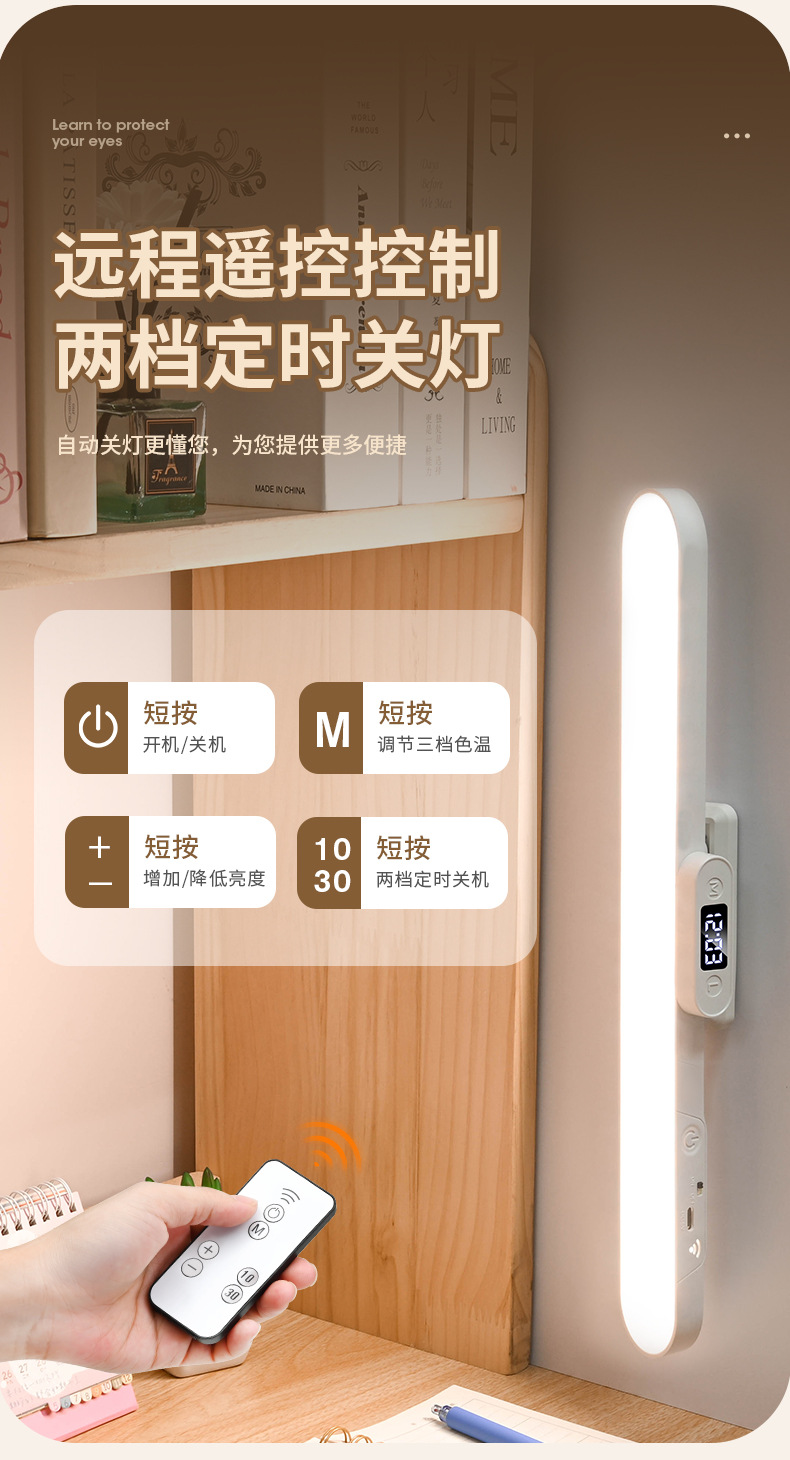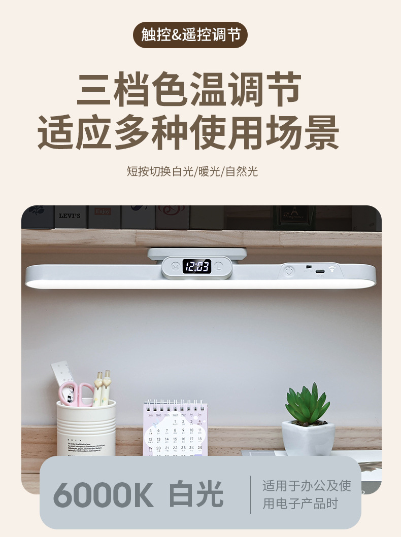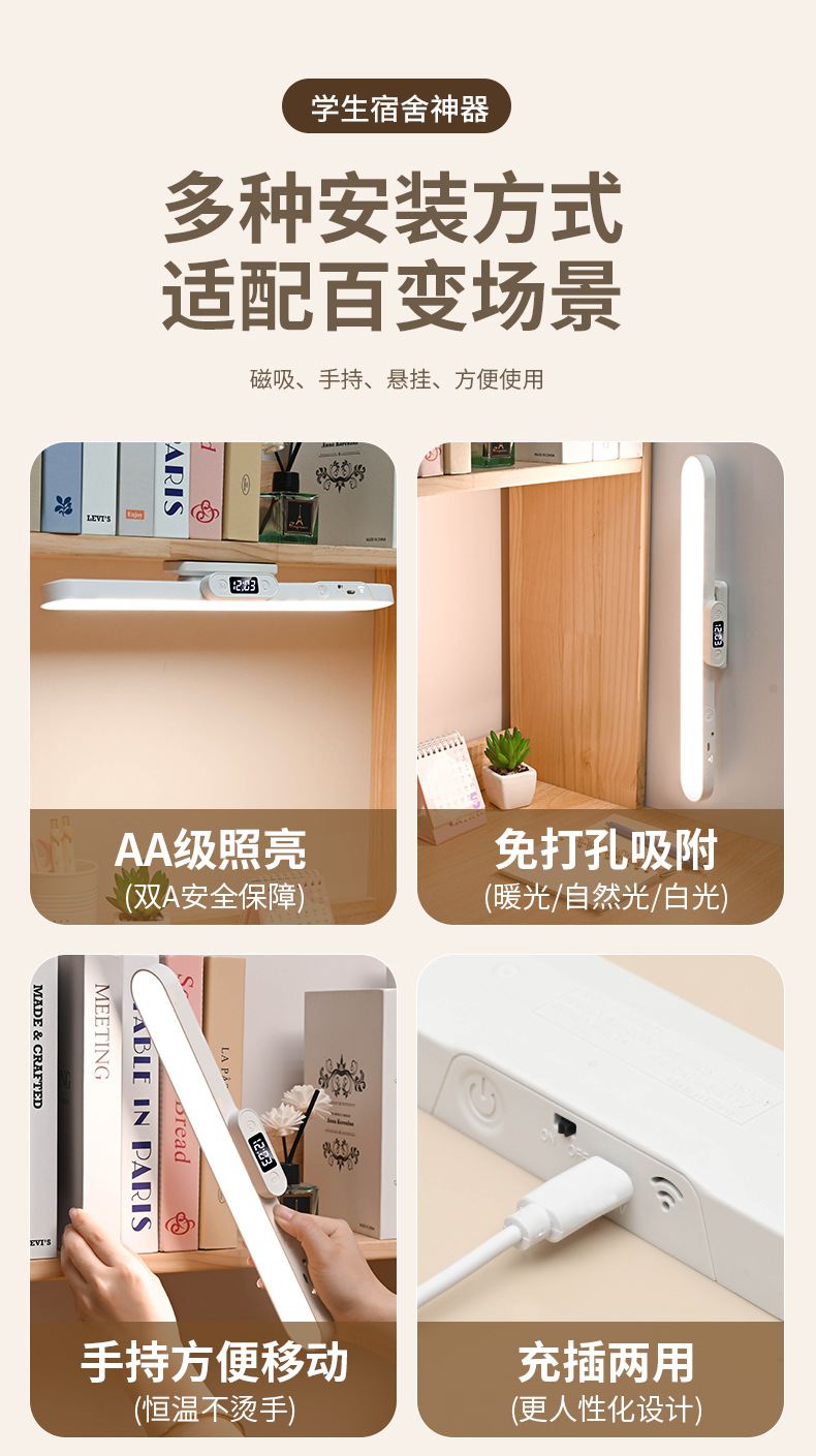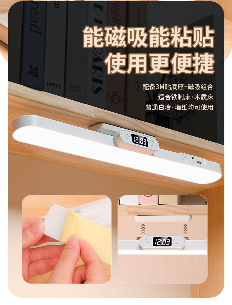 Магнитная светодиодная лампа, сенсорное управление, двойное управление, трехцветный свет, настольная лампа для студентов, спальни, прикроватная, портативный заполняющий свет