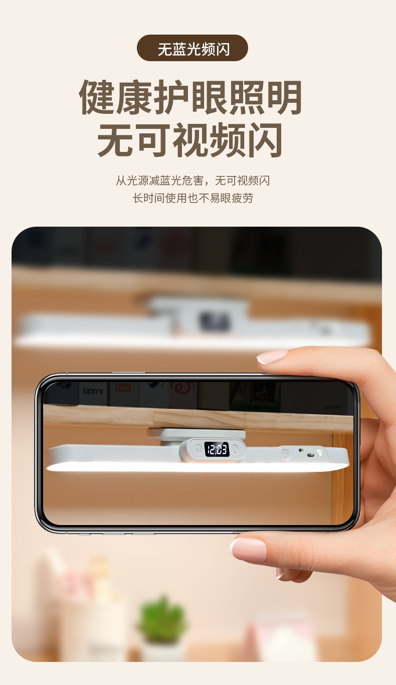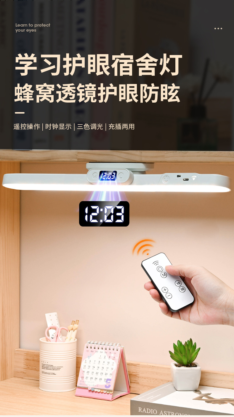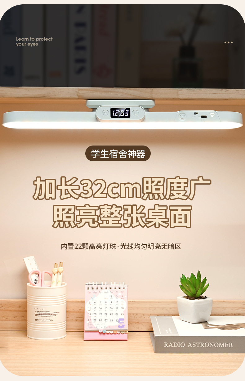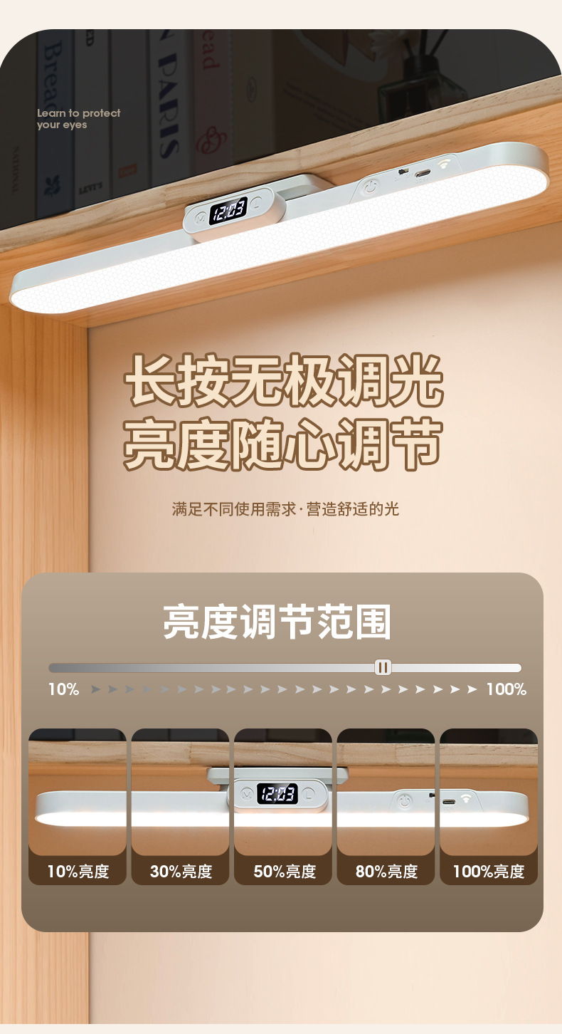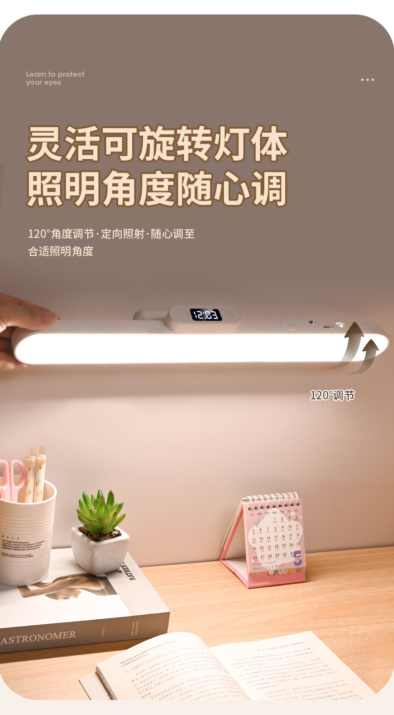 Магнитная светодиодная лампа, сенсорное управление, двойное управление, трехцветный свет, настольная лампа для студентов, спальни, прикроватная, портативный заполняющий свет