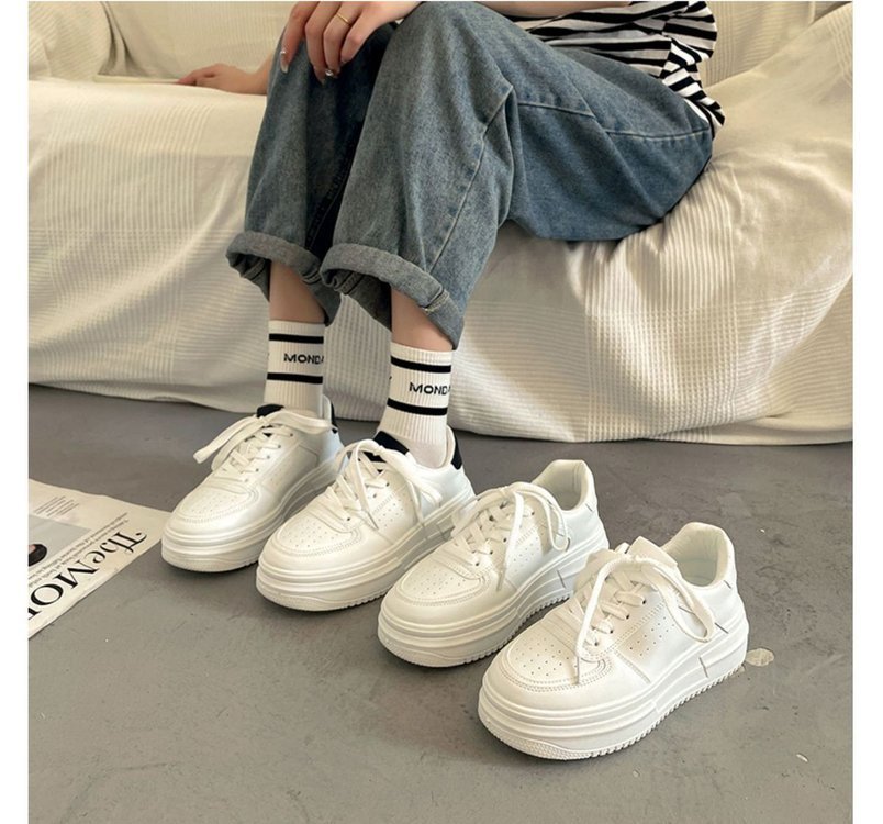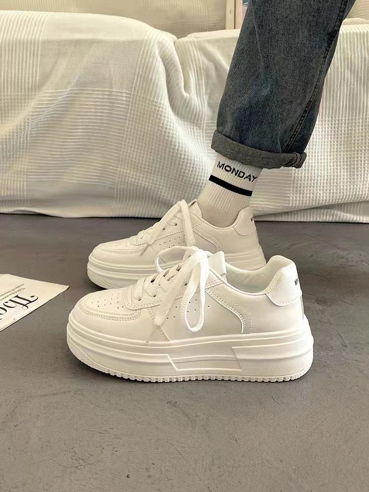 Толстосолёные белые туфли для женщин, весна и осень, новые, мелкие, повседневные спортивные туфли, шнуровка, увеличивающие рост, оптовая продажа