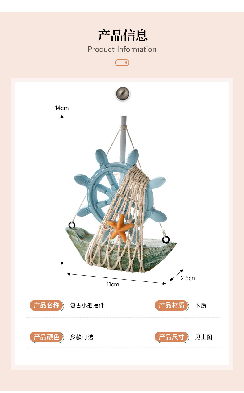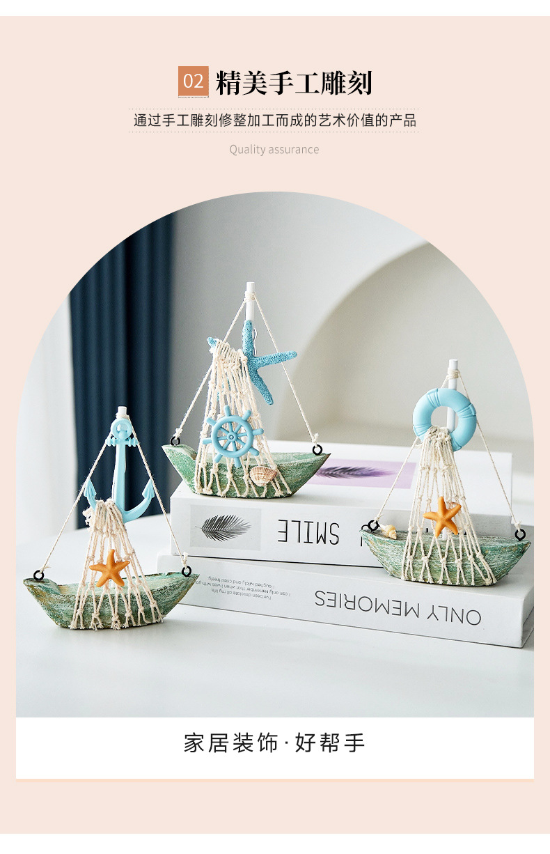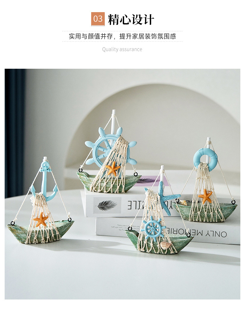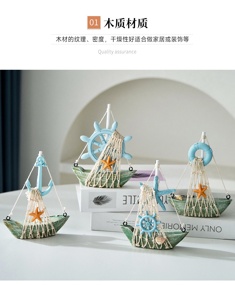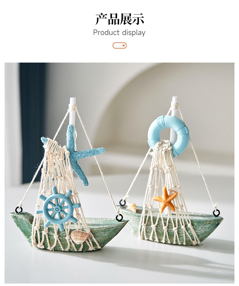 Ретро деревянный парусник в средиземноморском стиле, модель с якорем, штурманом, морской звездой и спасательным кругом