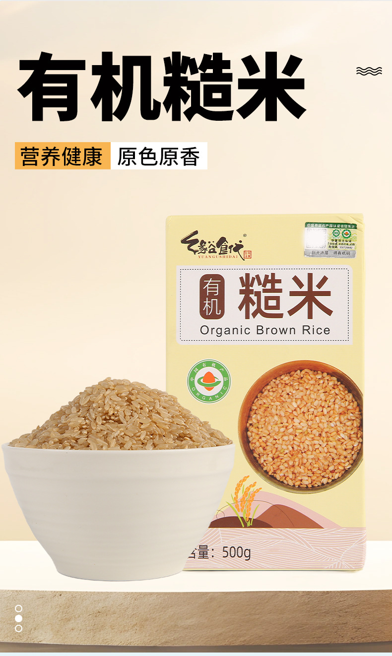 Органический коричневый рис, 500г, вакуумная упаковка