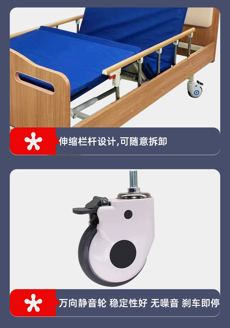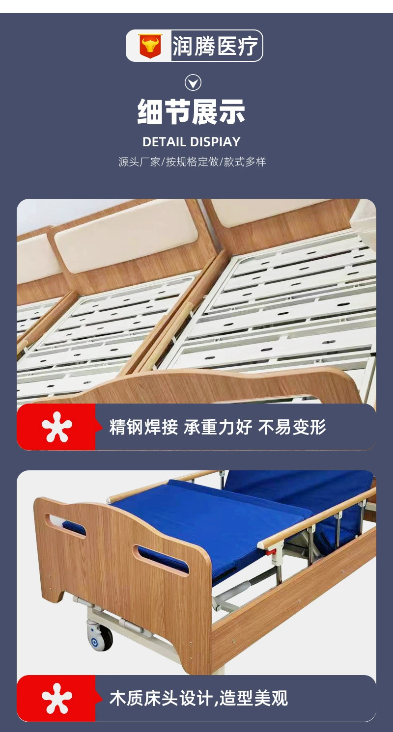 靠背折起角度可达0-85度。图片不同。价格不同,本店为源头厂家.支持定制。高中低档各种款式都可以制作.本店实木木床头木围挡养老院护理床。冲压面护理床