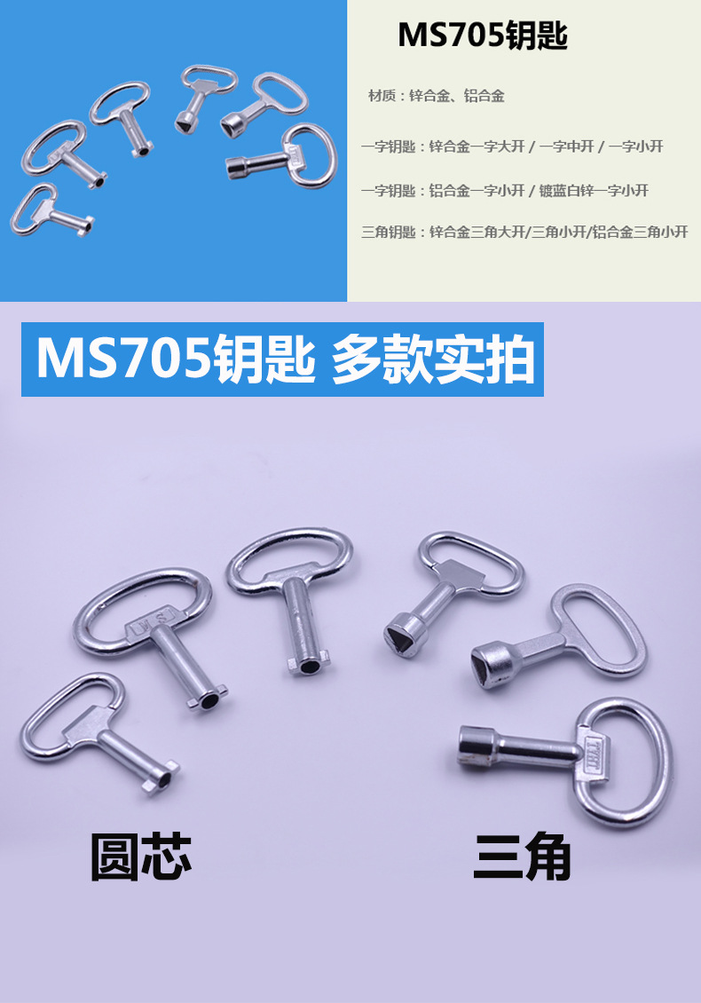 Замок с поворотным язычком Ms705, треугольный замковый цилиндр, ключ для распределительного ящика, замок для шкафов, пластиковый ключ