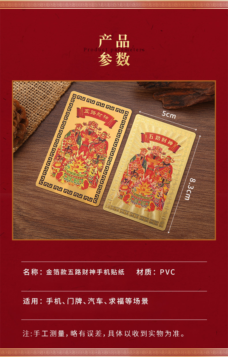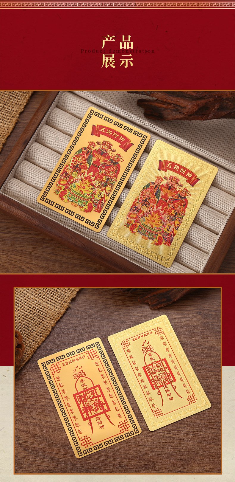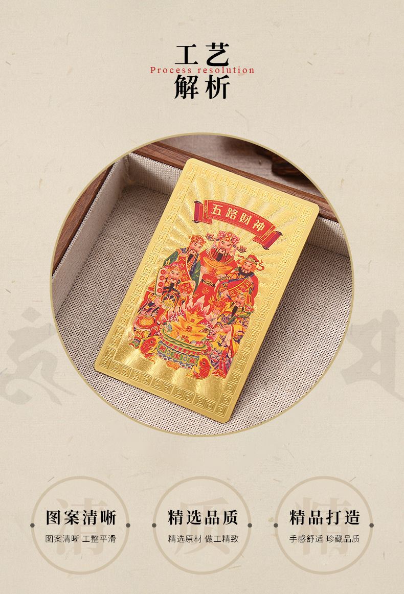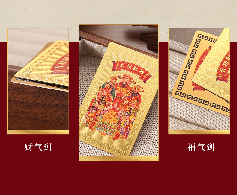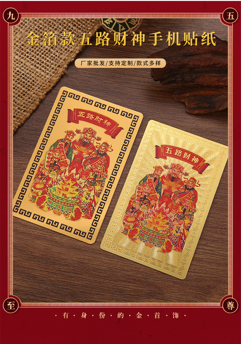 Золотая карта Пяти Богов Богатства портативный мобильный телефон с золотым фольгированным металлическим листом для привлечения богатства, Чжао Гунмин для привлечения богатства, сокровищ, мира и благоприятности