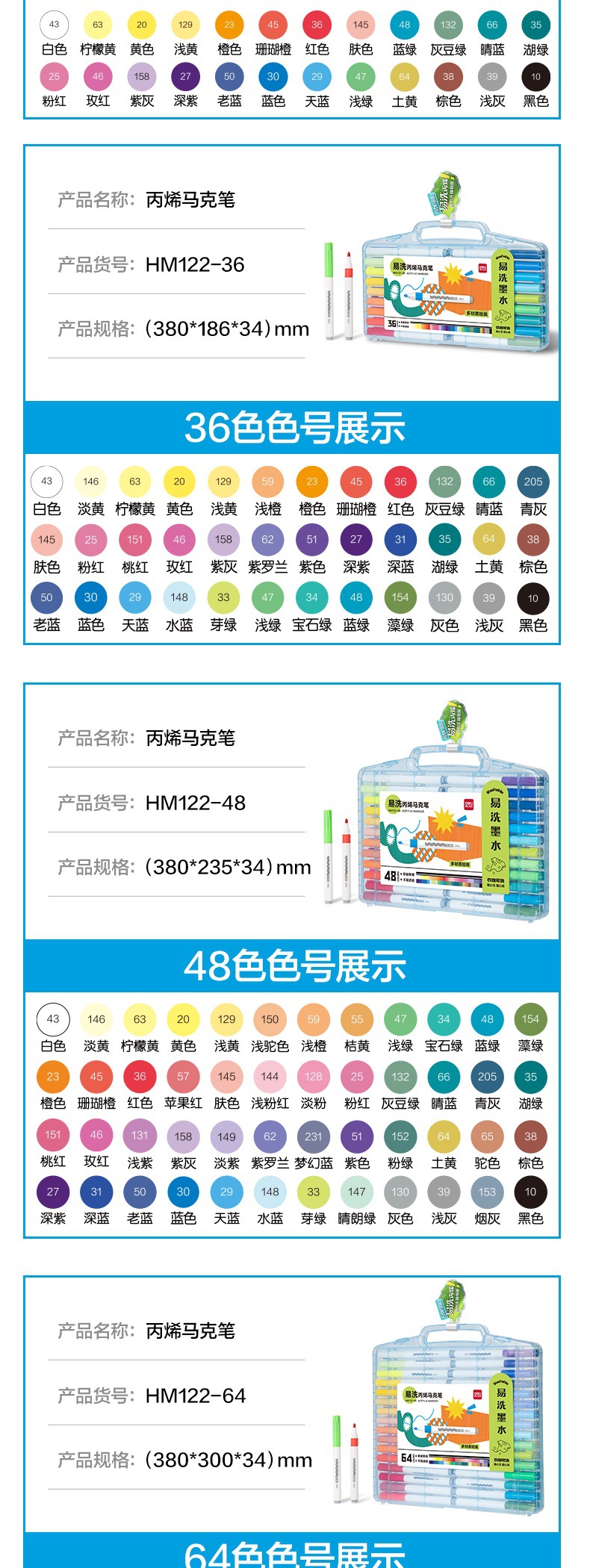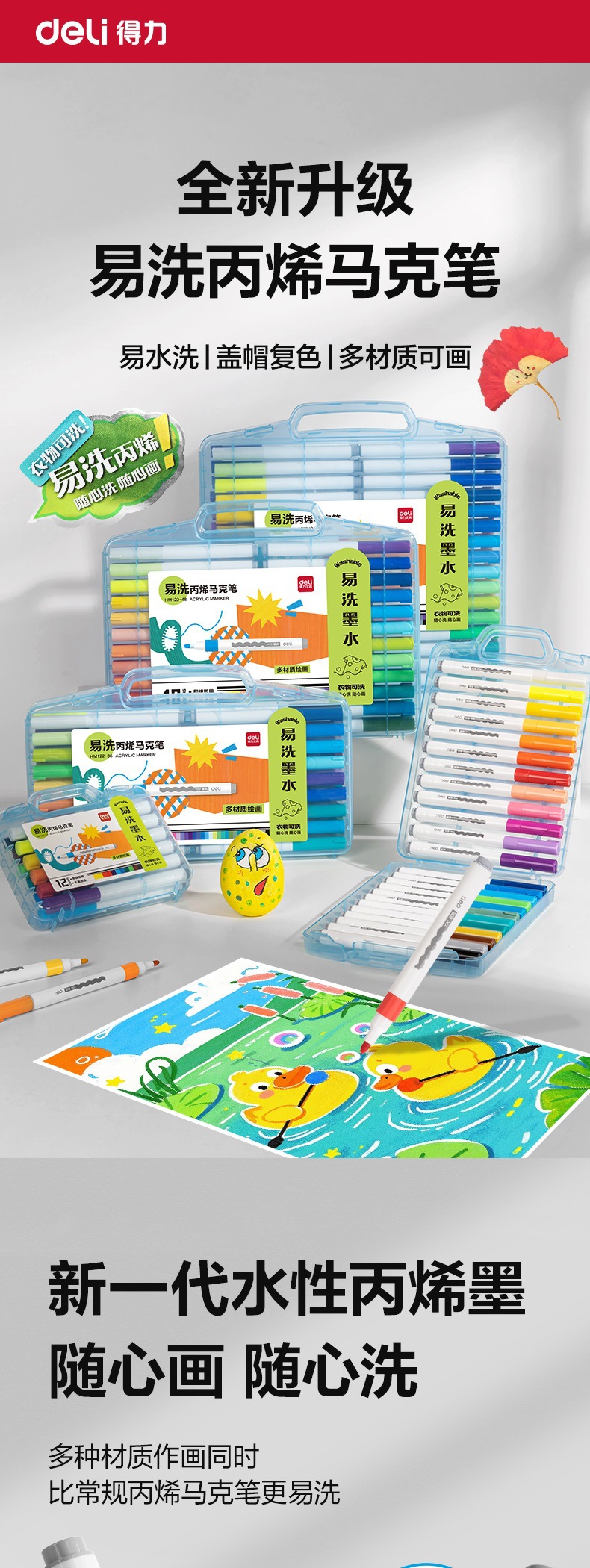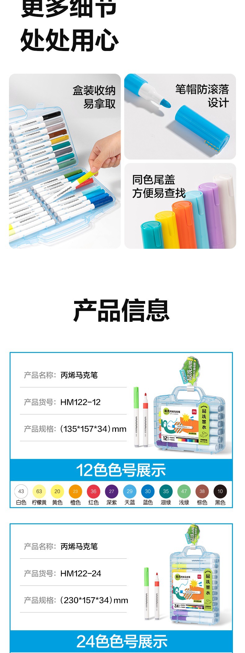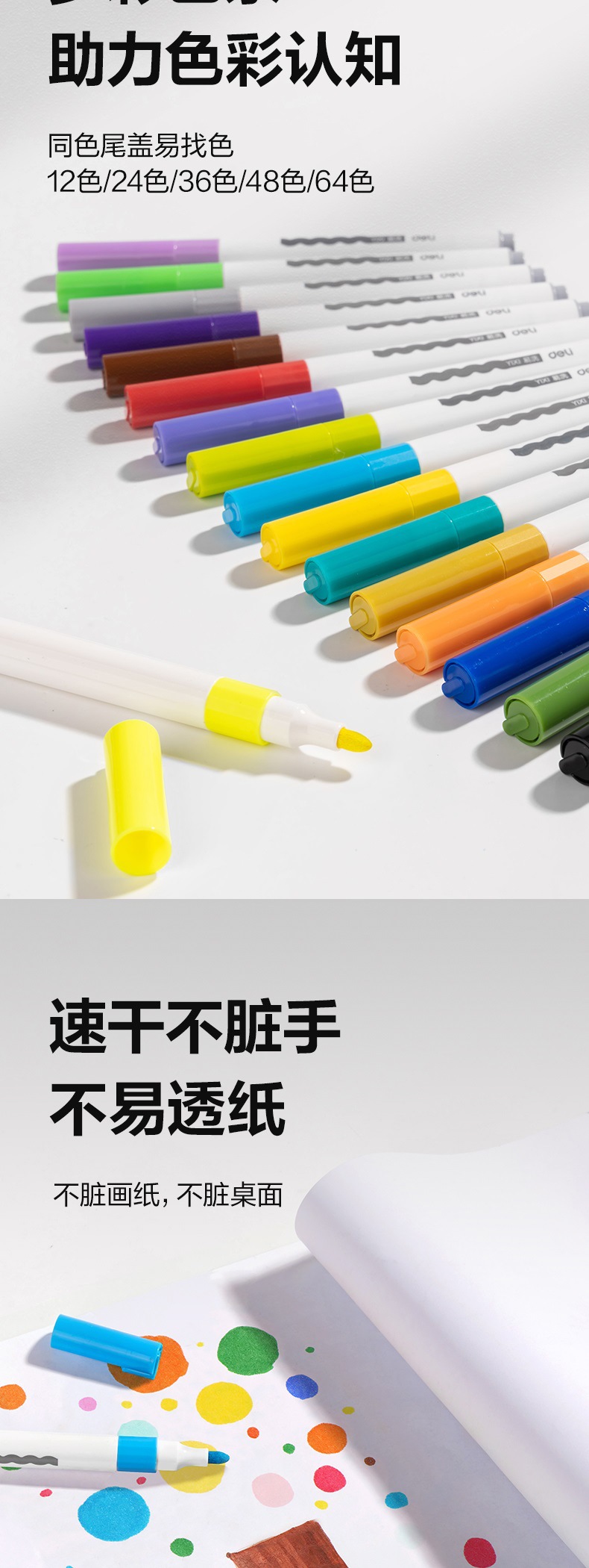 Маркер Deli Hm122-36 Легко моющийся круглый акриловый (Смешанные) (36 цветов/Коробка)