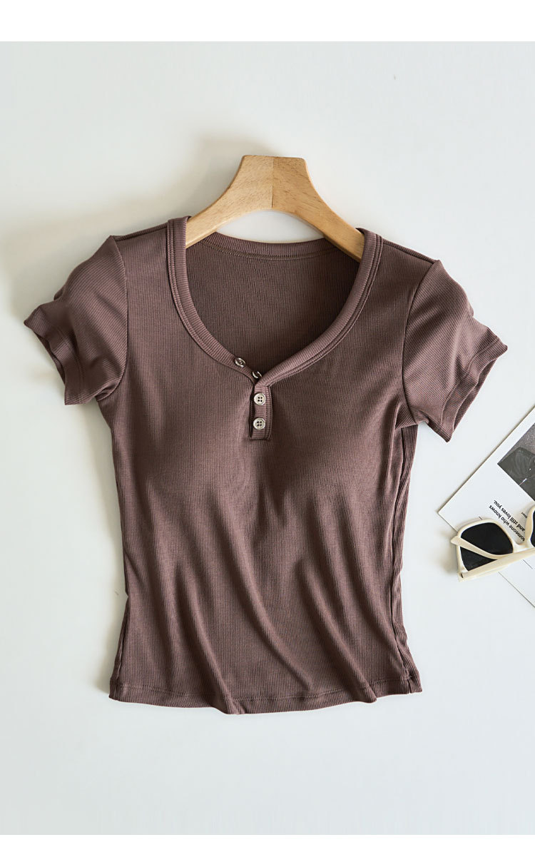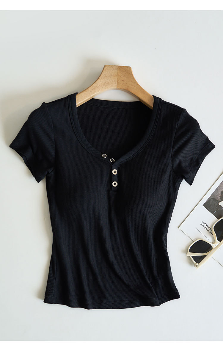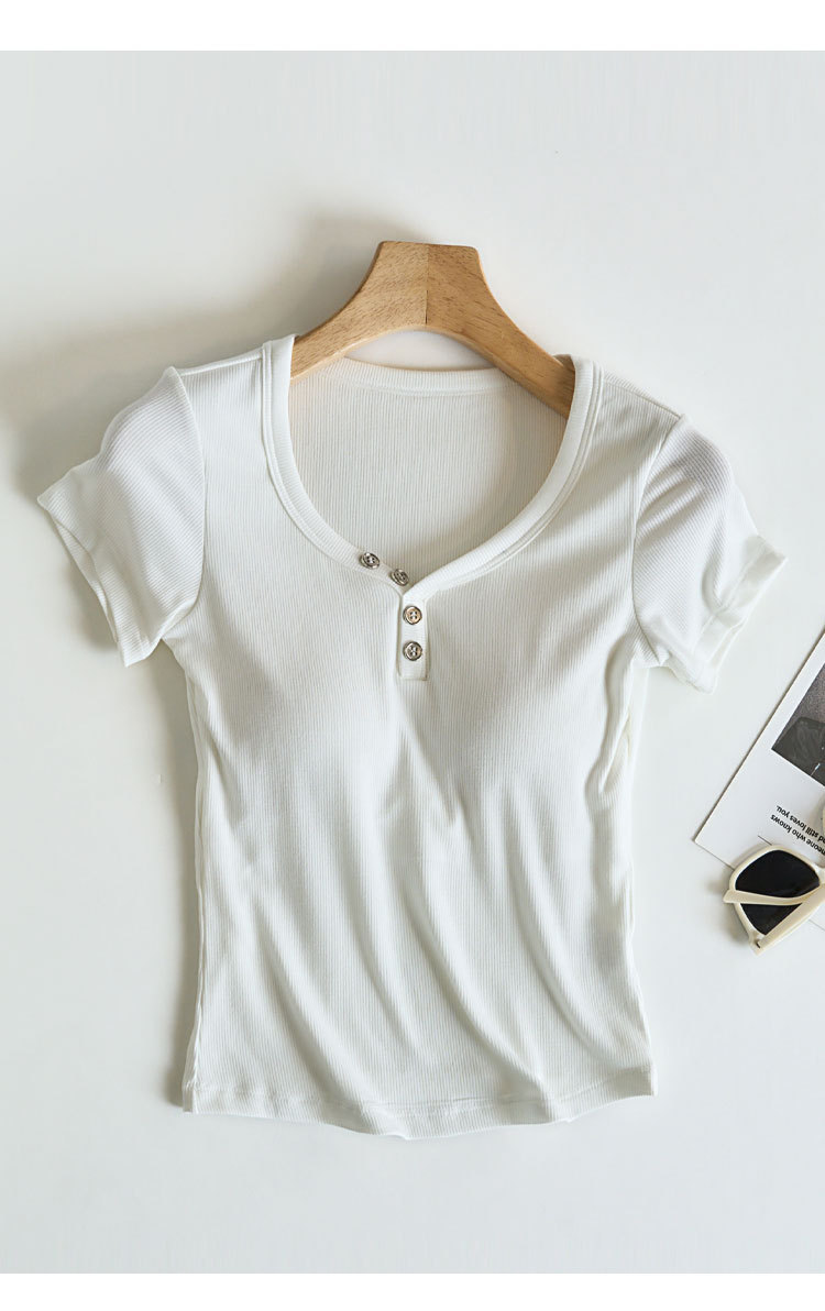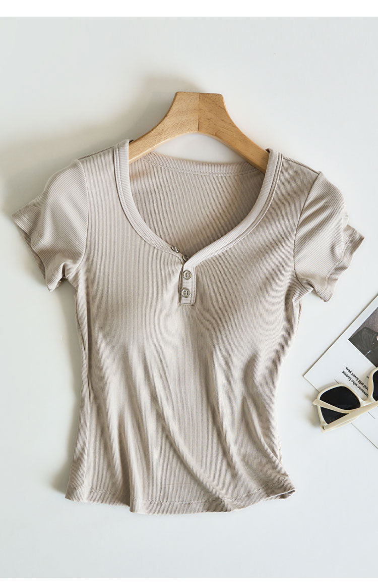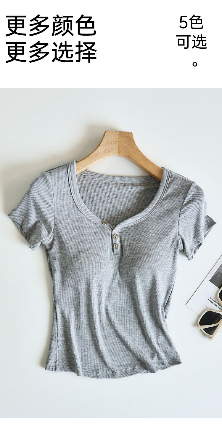 Женская летняя тонкая облегающая трикотажная блузка с половинным рукавом и вставками для груди, интегрированная базовая футболка без бюстгальтера