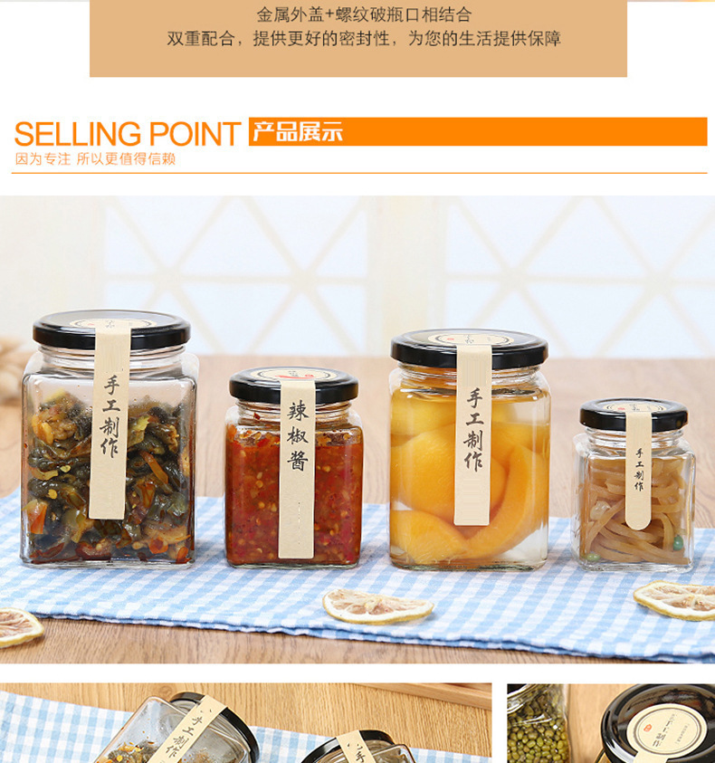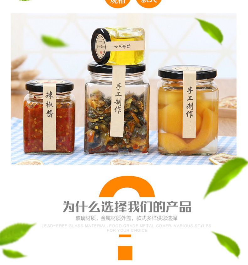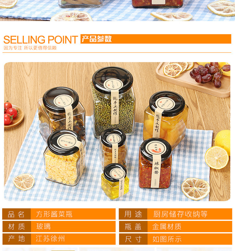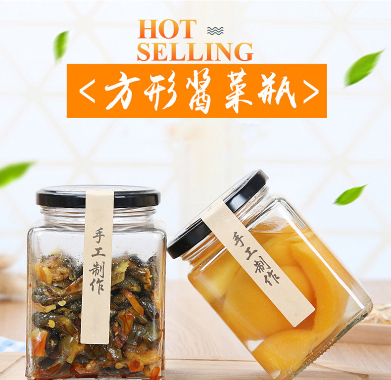 Квадратная банка для консервирования пищевого класса, банка для меда, варенья, маринованных огурцов, герметичная банка с крышкой, термостойкая, паровая пустая банка