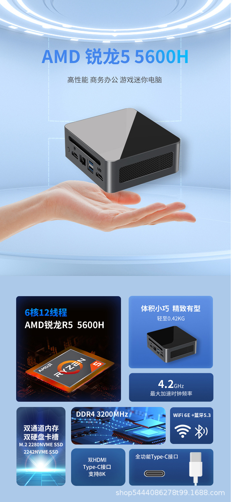 Мини ПК Zhiben Amd Ryzen R5-5600H, мини игровой ПК для LOL, офиса и дома, 8K