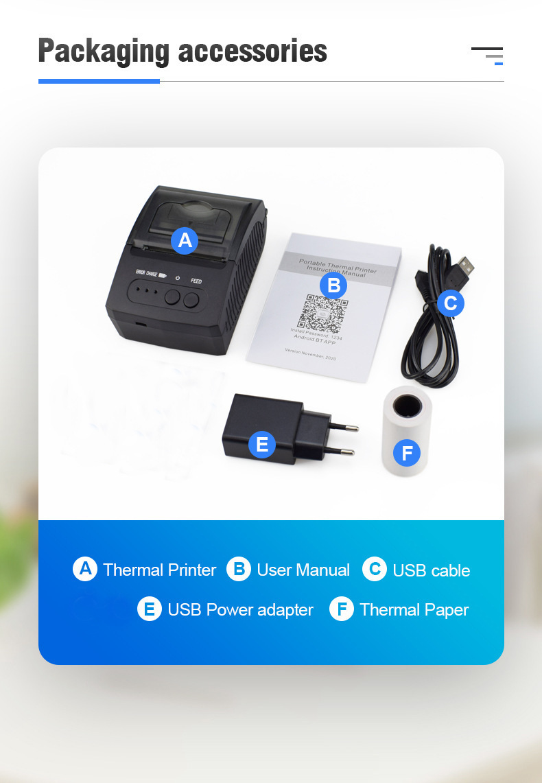 Прямые продажи термопринтера 58мм, портативный Bluetooth принтер для чеков Meituan