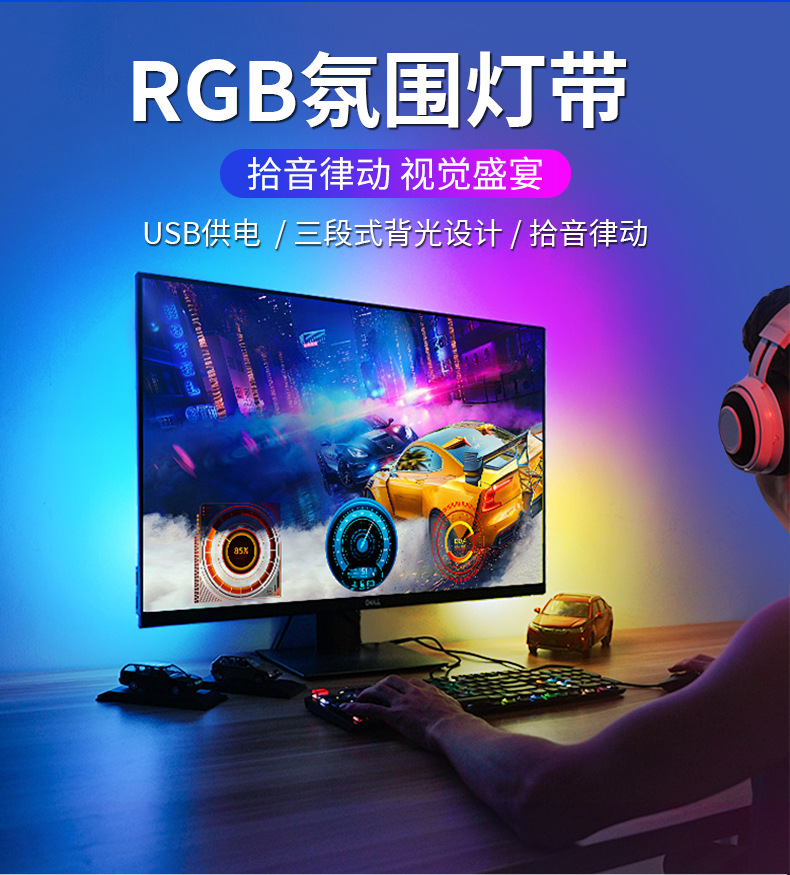 Кросс-бордерный RGB атмосферный свет с дисплеем для спальни, специальный свет для музыки с телевизора, ночной свет для компьютера