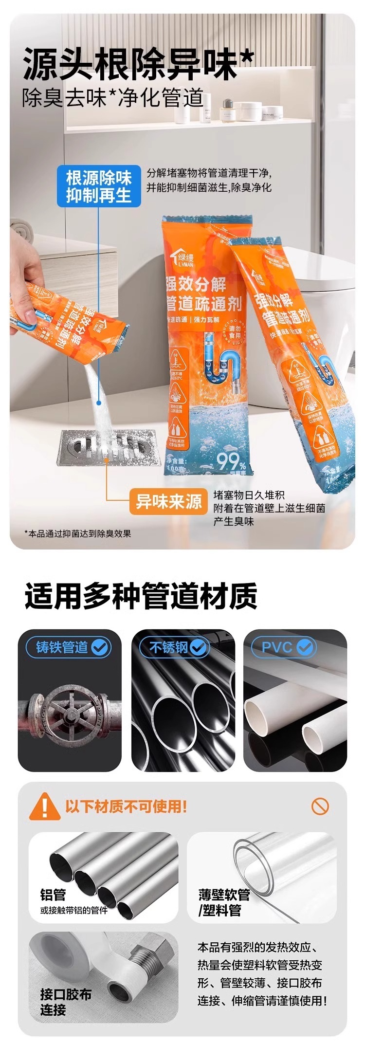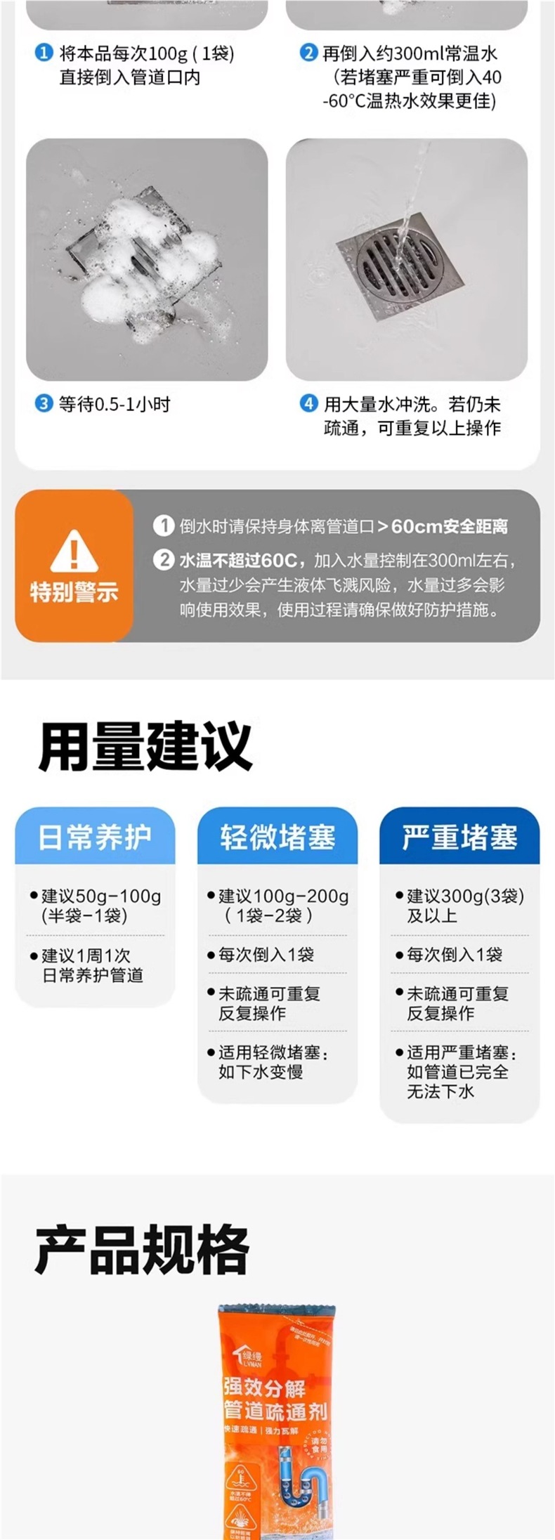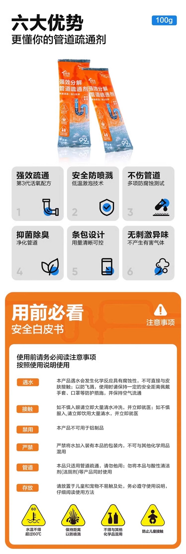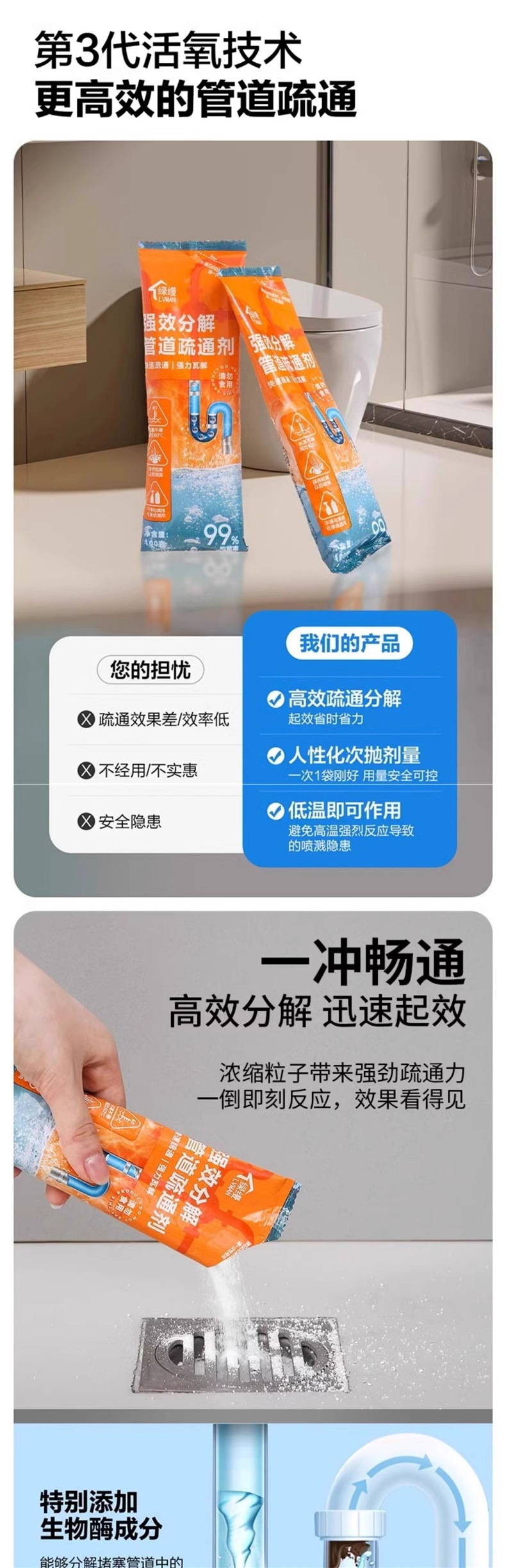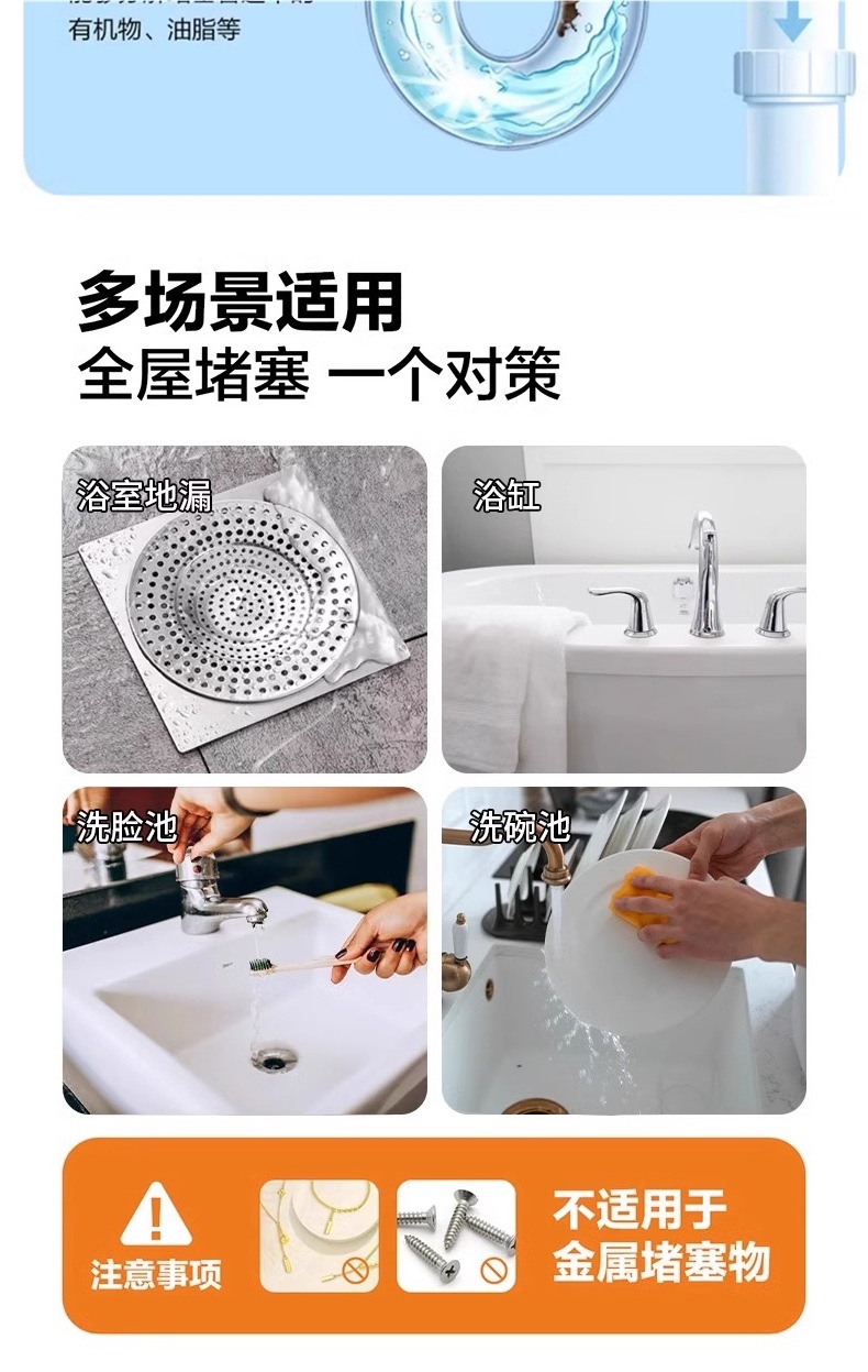агент для прочистки труб растворяет туалетный, кухонный порошок, масляные пятна в канализации, блокировка стока, дезодорация