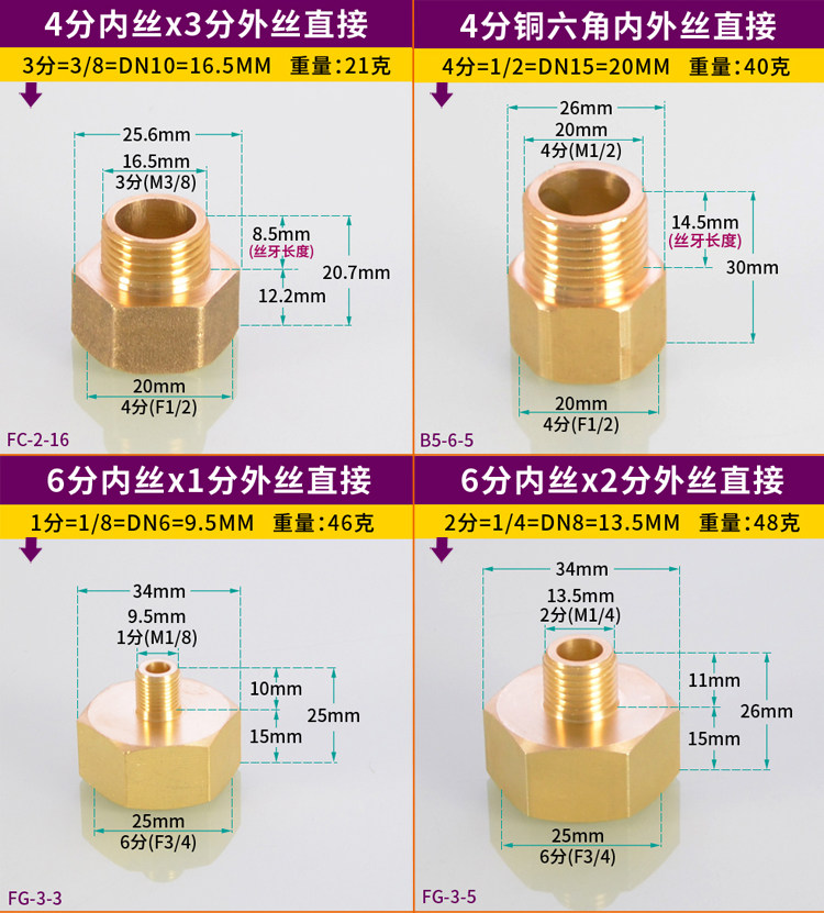 Латунные редукционные муфты с внутренней и наружной резьбой 1/2 дюйма, 1/4 дюйма, 1/2 дюйма, 3/4 дюйма, 1 дюйм с большими и малыми головками